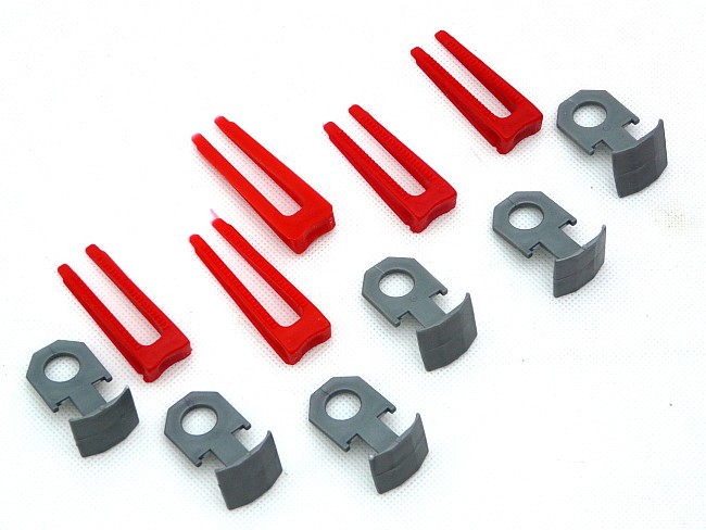 Состоит из набора съемных клипс и многоразовых клиньев, изготовленных из высококачественного пластика.