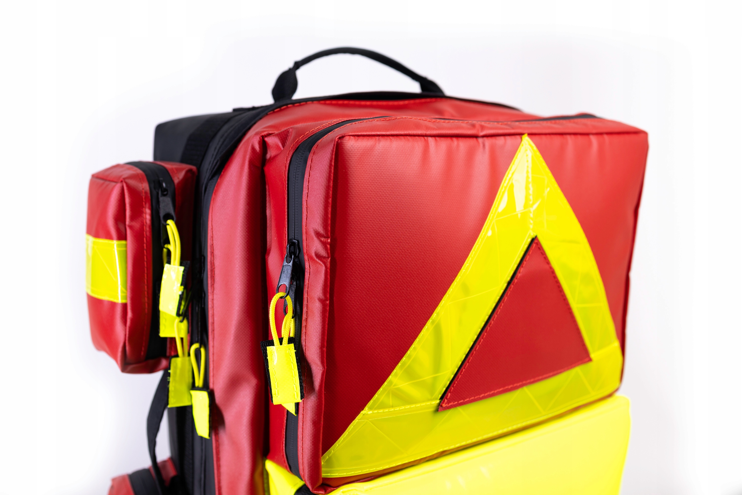Медицинские услуги теперь могут быть быстро удалены с нижней части рюкзака. Весь прозрачный карман будет размещать документацию в формате A4. Он был закреплен с помощью молнии, а неоновый флуа -материал позволит ему найти даже ночью.