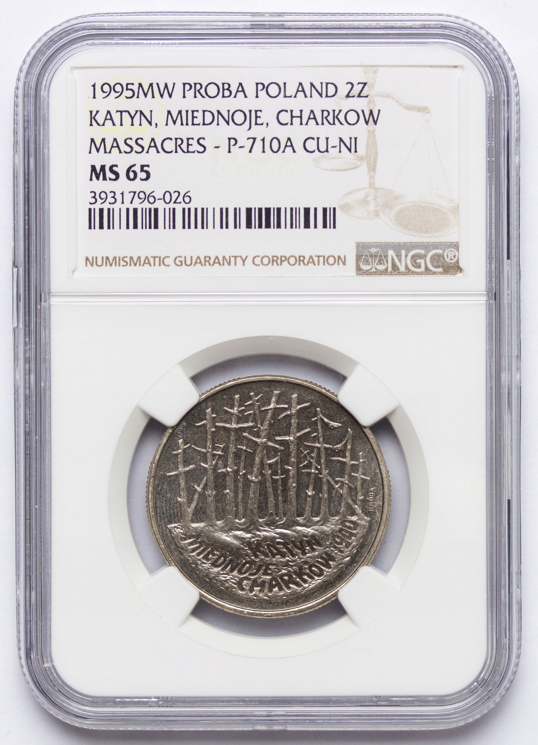 ПРОБА, МІДНО-НІКЕЛЬ, 2 золота 1995, Катинь, NGC MS65, MAX NOTA, РІДКІСНІСТЬ