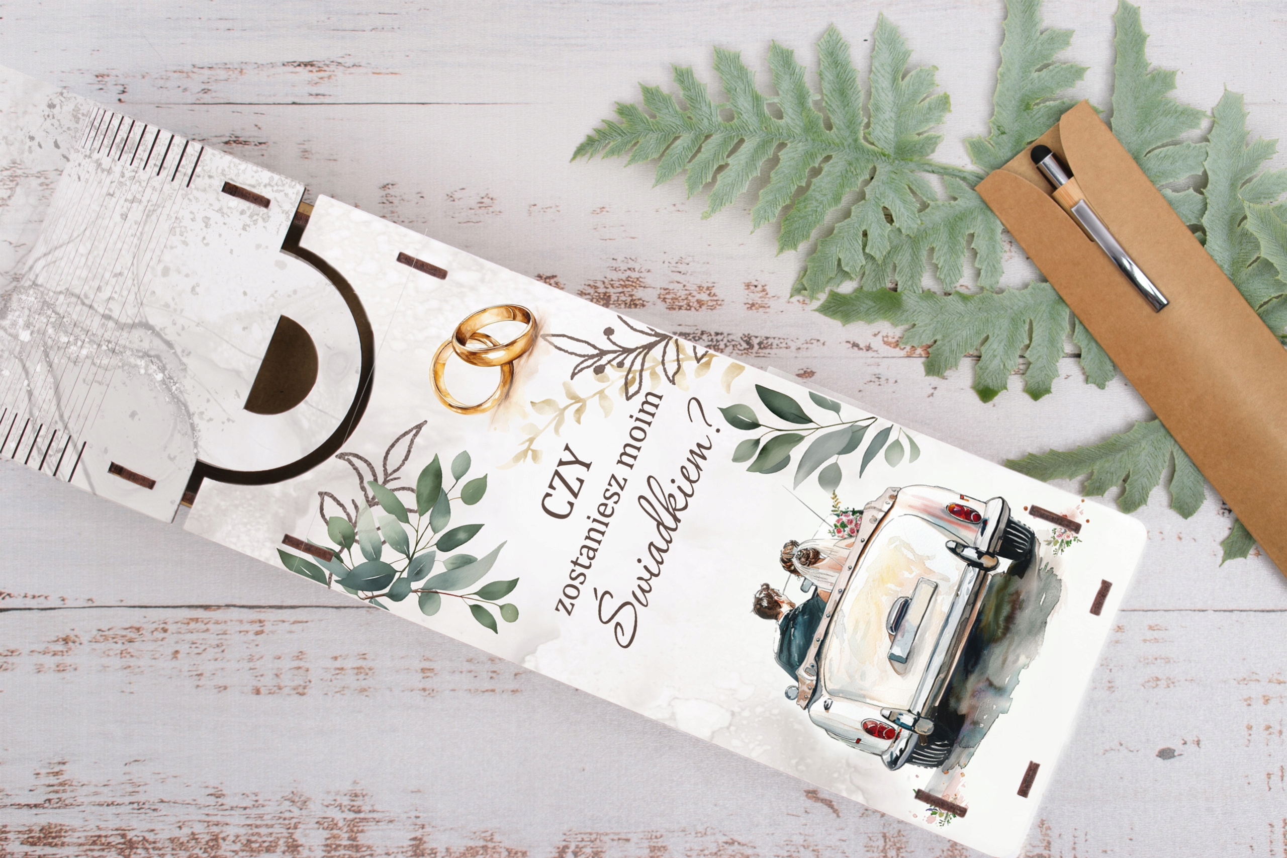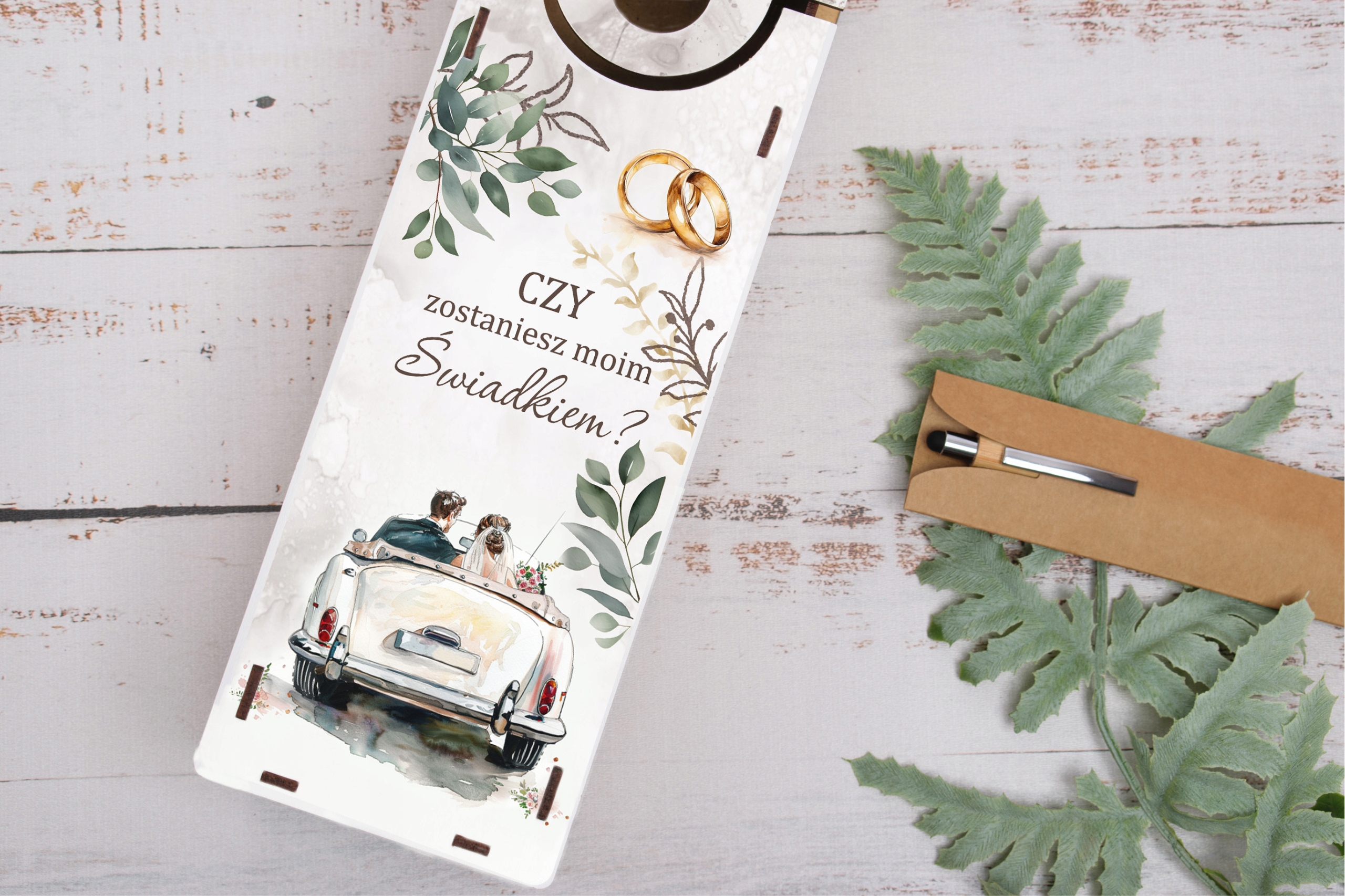 PROŚBA O ŚWIADKOWANIE SKRZYNKA NA WINO KOMPLET DLA ŚWIADKÓW ŚWIADKOWEJ WZÓR