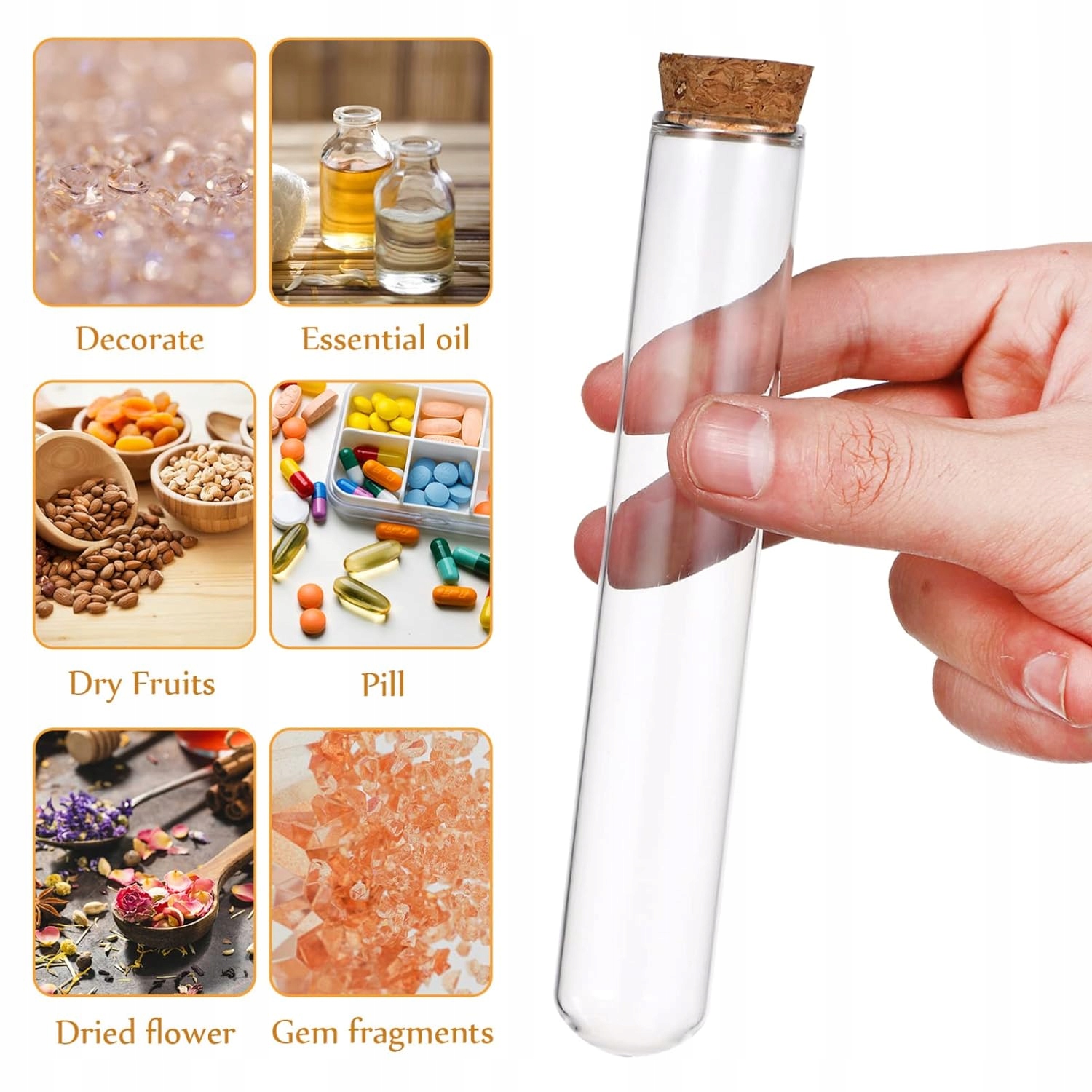 В упаковке 5 стеклянных пробирок по 50 мл, емкостью 25 х 158 мм, 39 этикеток и 1 ершик для пробирок. Материал пробирки изготовлен из стекла, которое обладает хорошей стабильностью и термостойкостью. также предназначен для человеческого организма и может быть наполнен горячим какао и другими высокотемпературными жидкостями. уплотнение и специальная конструкция: каждая туба оснащена пробкой, которая идеально вписывается в отверстие тубы, обладает хорошими герметизирующими свойствами, изолирует жидкость и предотвращает утечку содержимого. Специальный дизайн, в комплект входят этикетки-наклейки и щеточка для пробирок, которая удобна для наполнения различных жидкостей в пробирке и может быть полностью очищена много раз. Существует множество этикеток, которые можно использовать повторно и их легко отличить. Множество применений. Прозрачные пробирки большой емкости можно использовать не только для хранения жидкостей, порошков, ювелирных изделий, семян, бусинок или образцов, но также для украшения таких мероприятий, как Хэллоуин, Рождественские или научные вечеринки.