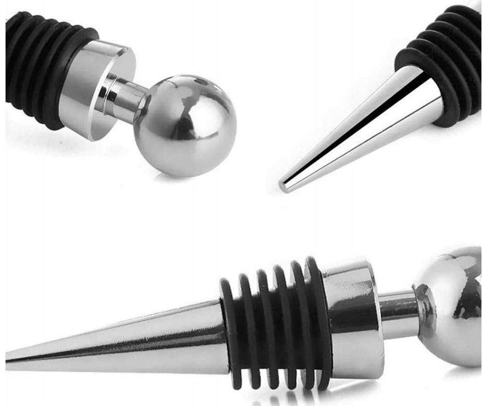 Эстетичная пробка для вина и бутылки, оснащенная силиконовым колпачком, который дополнительно герметизирует бутылку. Изготовлен из пластика, обеспечивающего длительное использование.