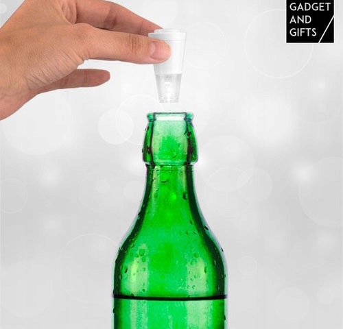 Пластиковая крышка от бутылки с дополнительной функцией освещения благодаря светодиоду. Вилка имеет кнопку, позволяющую включать и выключать ее в любой момент. Светящаяся шапка дает отличный эффект.