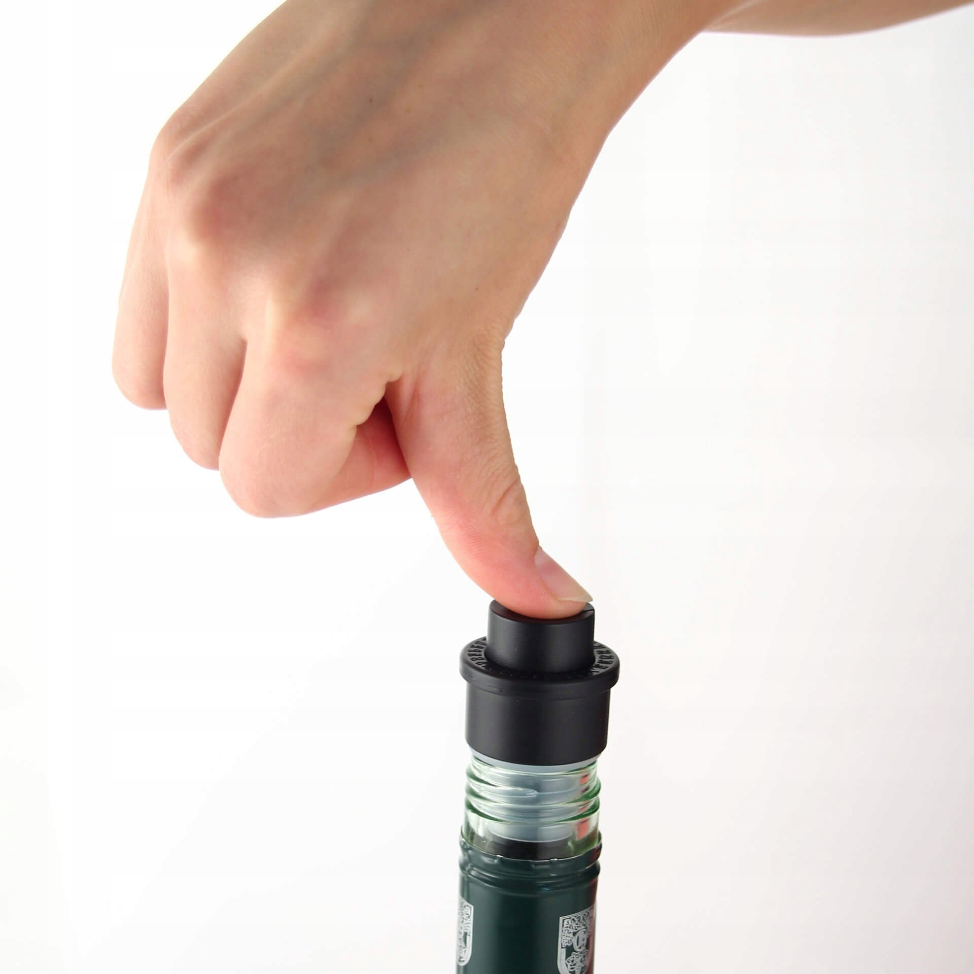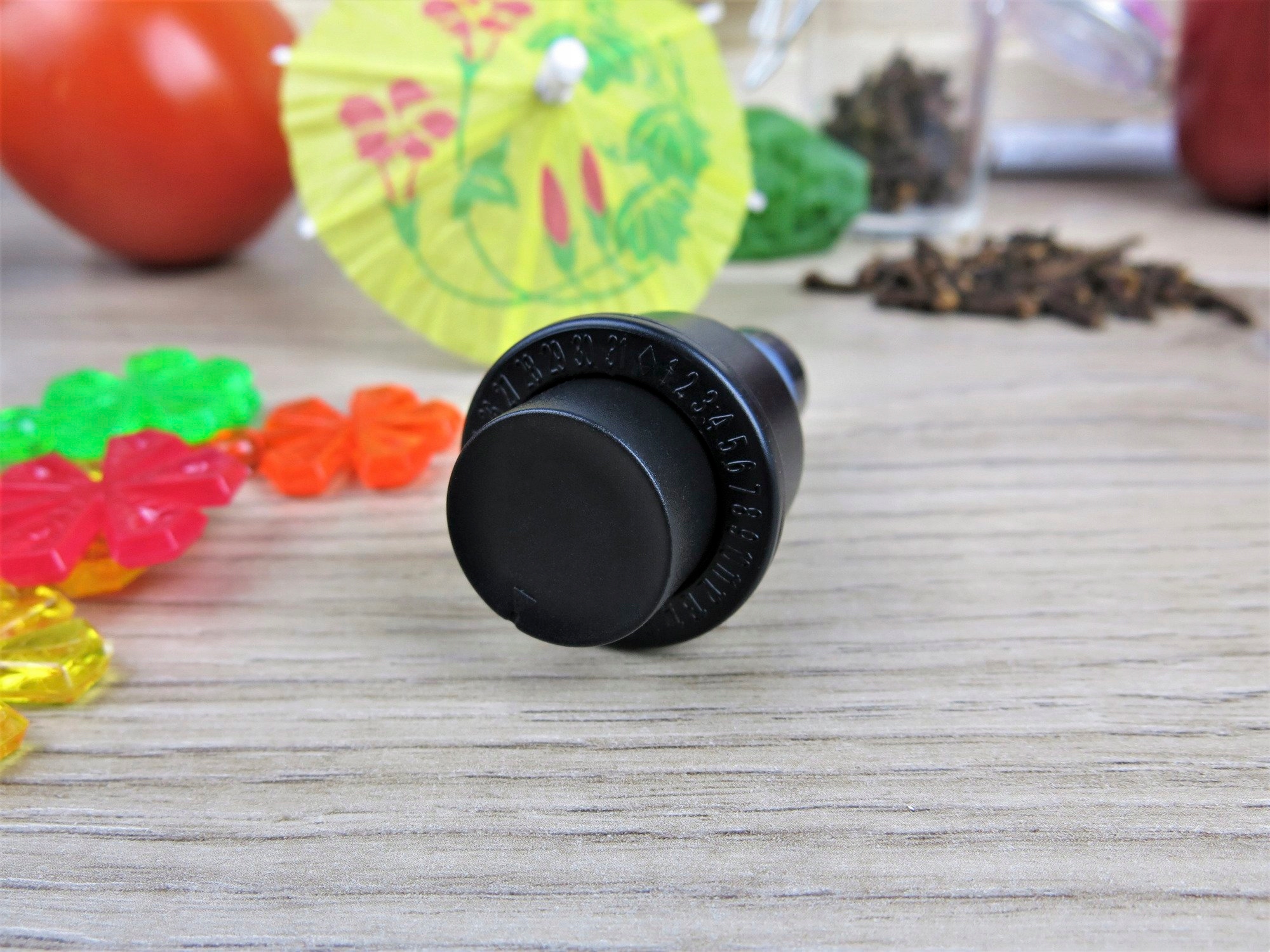 Удобен в использовании. С помощью кнопки, которую необходимо нажать несколько раз, он откачивает воздух, плотно прижимая его к стенкам бутылки и перекрывая доступ воздуха. В верхней части указаны дни месяца, позволяющие отметить точный день, когда напиток был закрыт.
