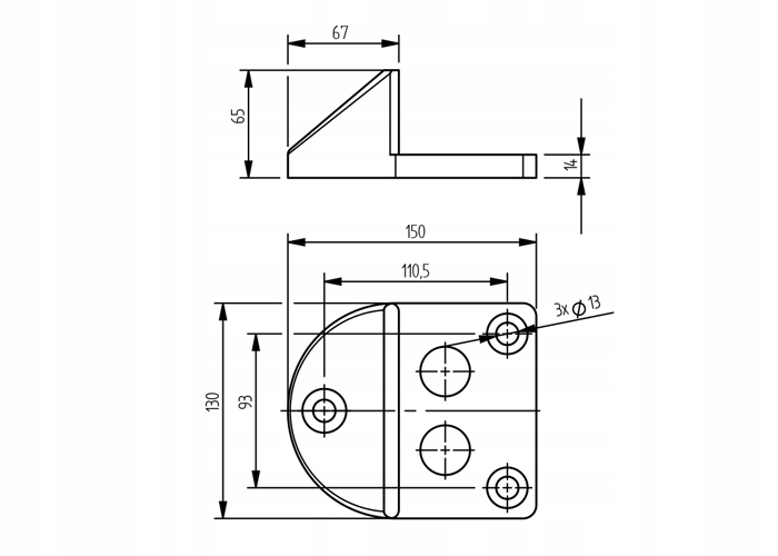 Имеет три крепежных отверстия для прикручивания и два отверстия для ригеля.