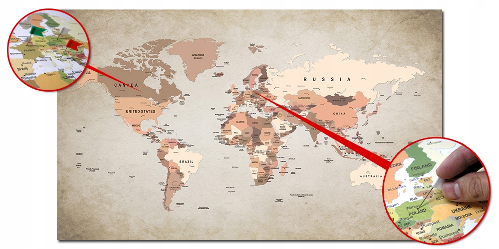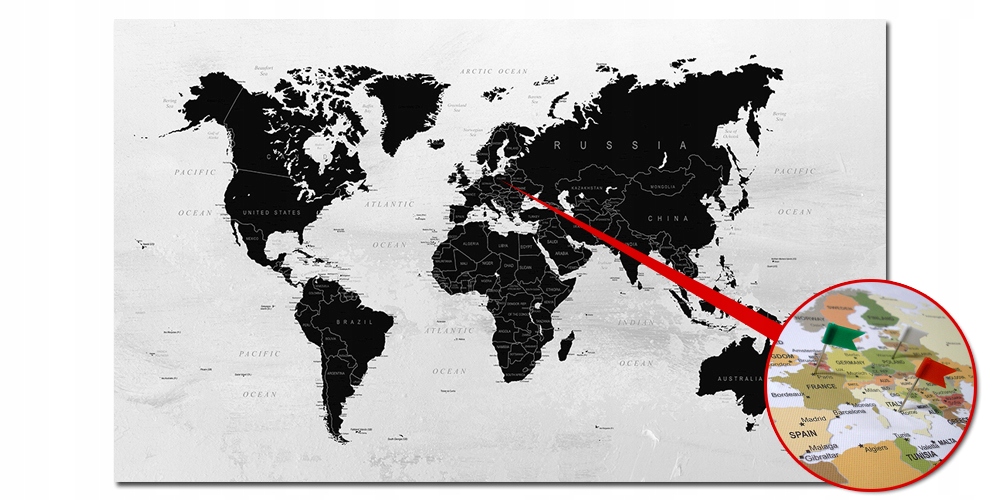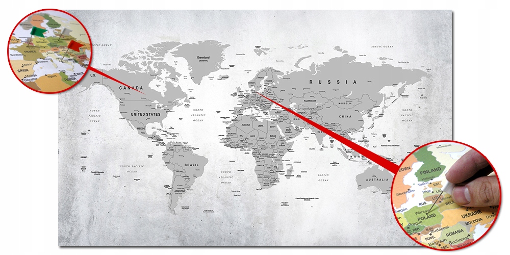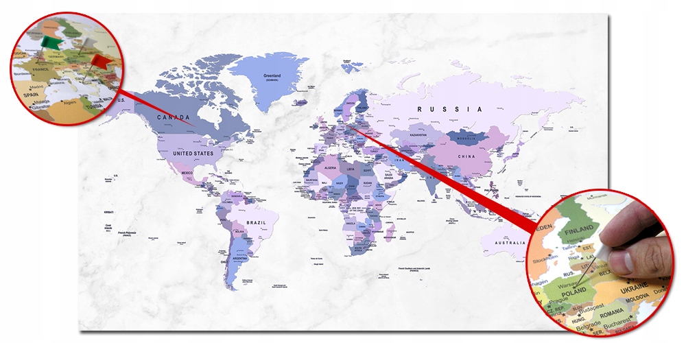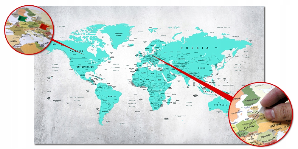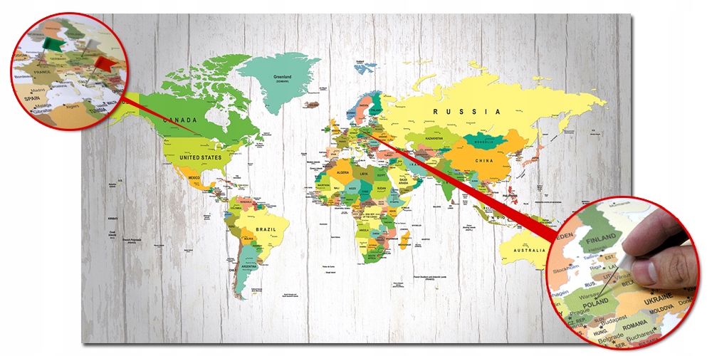 Холст натянут на пробковую основу, поэтому вы можете втыкать в него булавки, например, с фотографиями или отмечать места, где вы были или хотите пойти. Ее также можно использовать как пробковую доску. Идеальный подарок для путешественника и людей, которые любят исследовать мир.