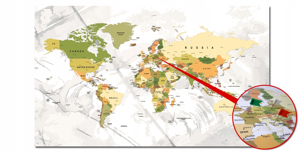 ПРОБКОВАЯ доска Карта мира государства, живопись 90х50