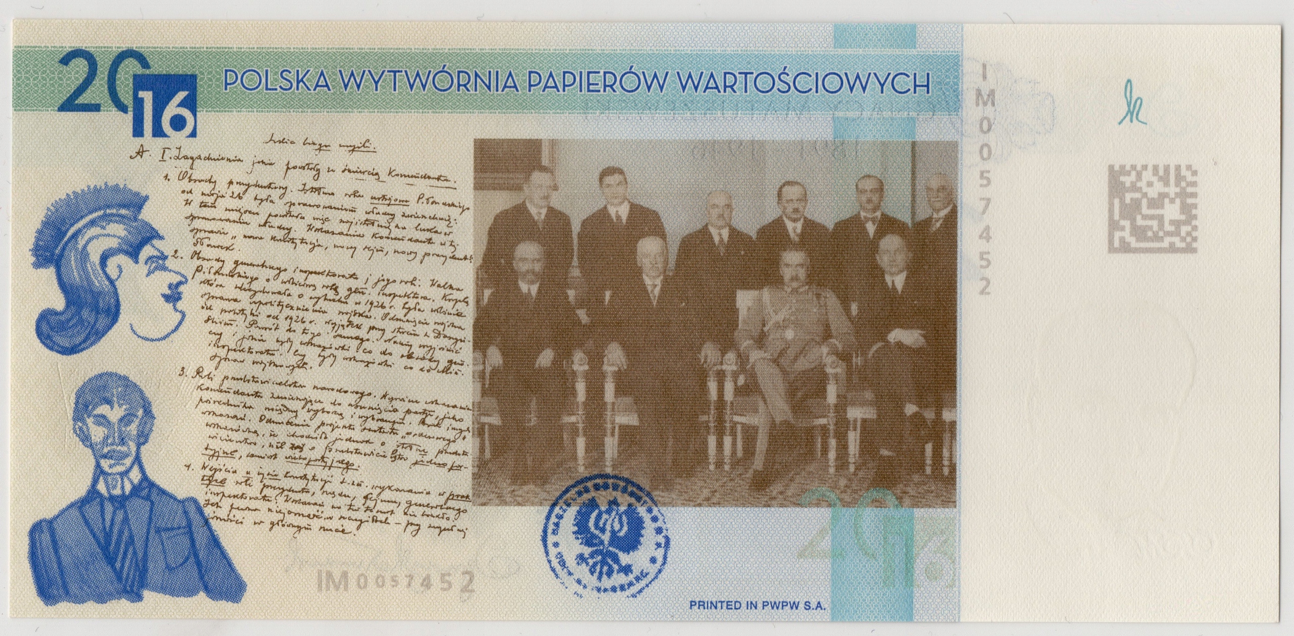 ПРОБНА БАНКНОТА PWPW MATUSZEWSKI - 2016