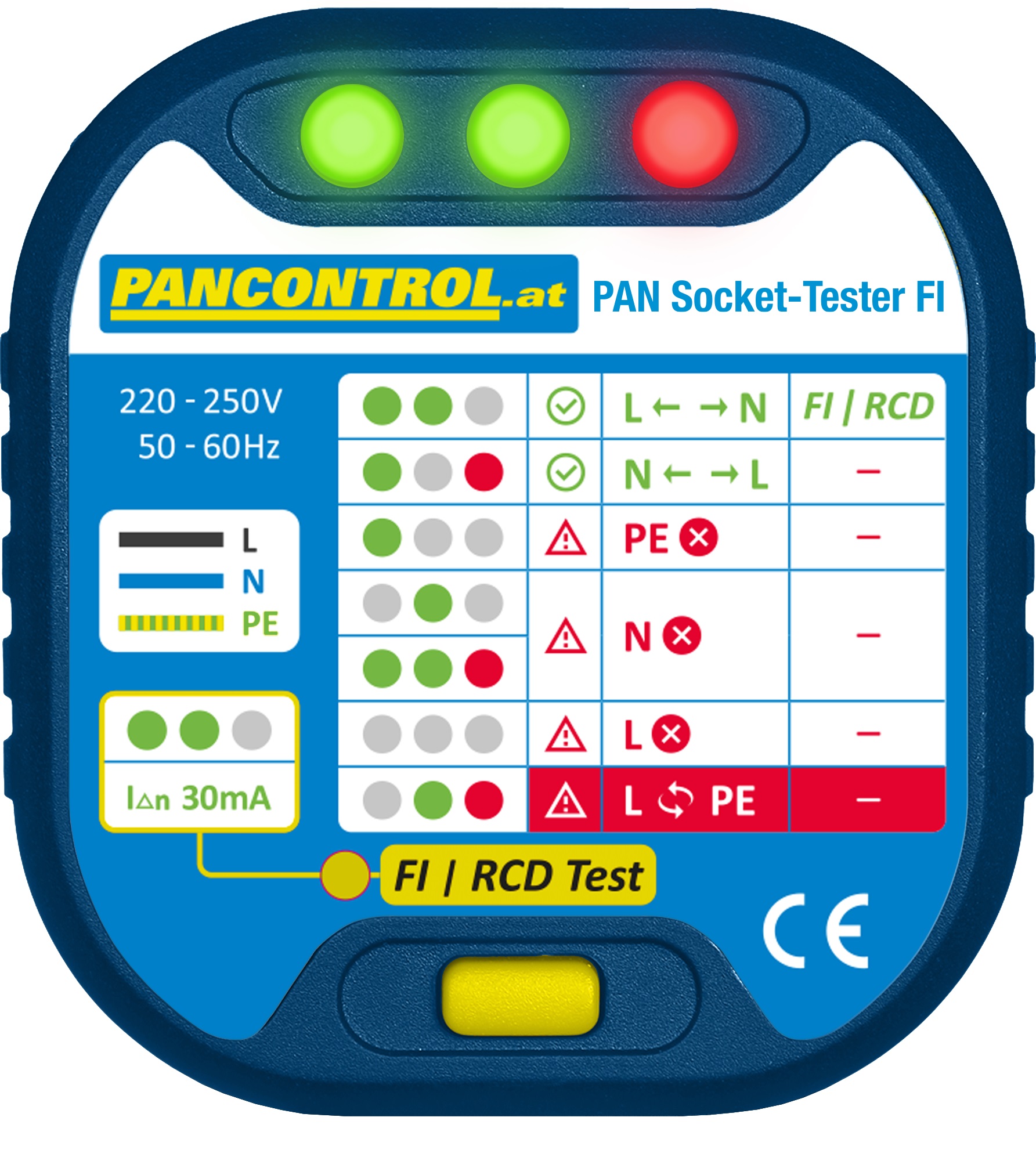 Тестер розеток с тестом FI 30 мА PANCONTROL
