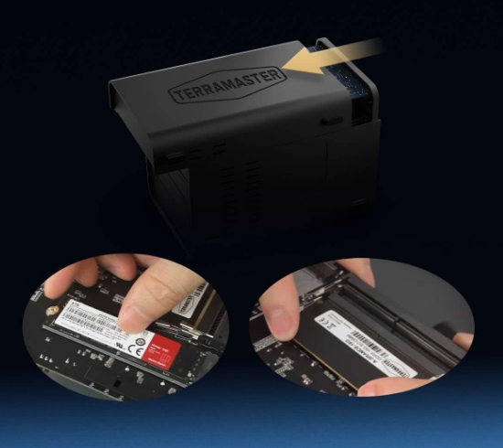 - Удобная установка твердотельных накопителей M.2: TerraMaster упрощает обращение с твердотельными накопителями M.2 в NAS F6-424 благодаря боковой сдвижной крышке, которая позволяет быстро и легко установить твердотельные накопители. Наличие затягиваемых вручную винтов обеспечивает беспроблемный процесс установки. F6-424 NAS оснащен отсеком для жесткого диска, который не требует инструментов, поэтому при установке жесткого диска не требуются дополнительные инструменты. Кроме того, инновационная конструкция TerraMasters Push-Lock автоматически защищает вставленные жесткие диски и предотвращает случайное отключение или проблемы в автономном режиме.