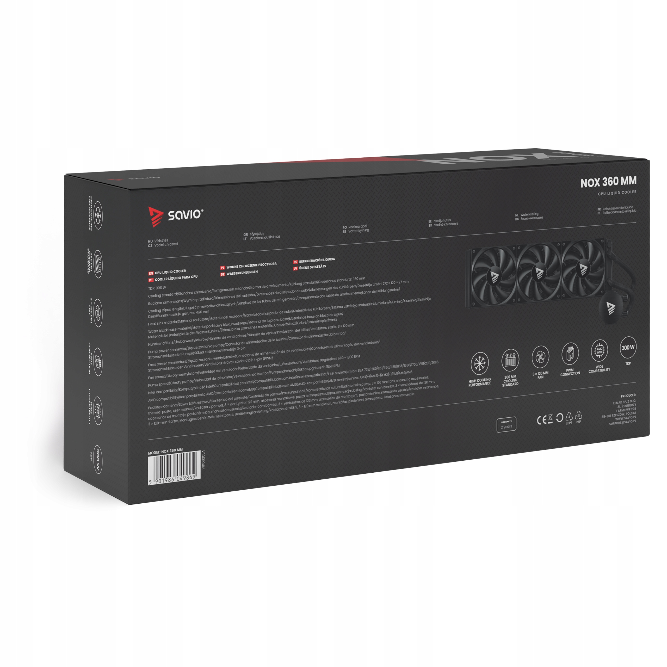 NOX 360 мм поддерживает процессоры с коэффициентом TDP (Thermal Design Power — количество тепла, которое должна рассеивать система охлаждения) до 250 Вт, что делает его идеальным решением для эффективных центральных блоков.