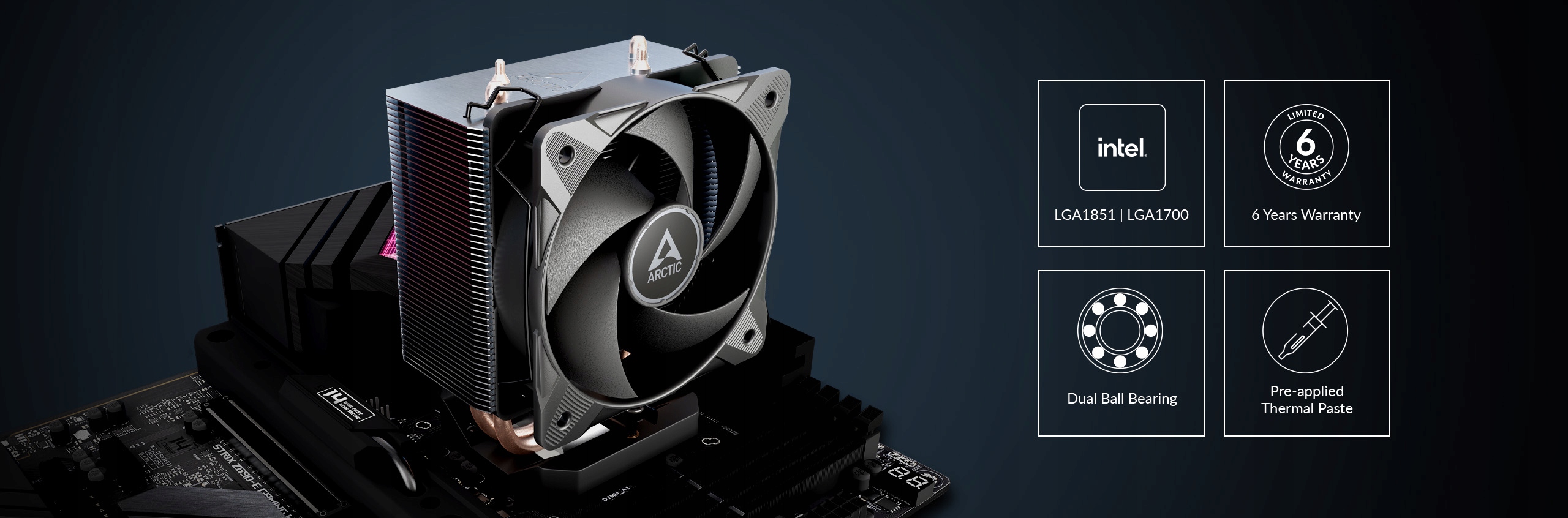 Freezer 8i CO поставляется с высокоэффективной термопастой ARCTIC MX-6, поэтому кулер можно установить и запустить сразу, без необходимости нанесения пасты самостоятельно.