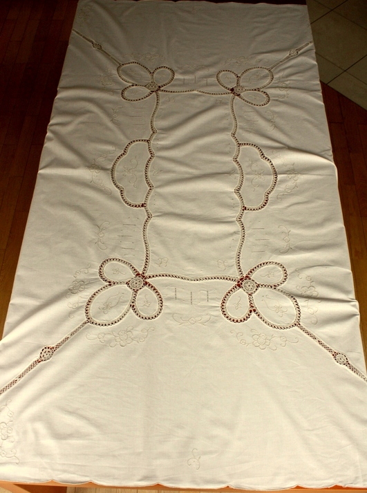Распродажа! Элегантная скатерть экру с вышивкой и кружевом