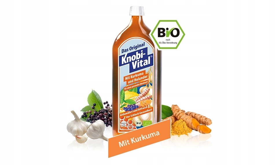 -VITAL с куркумой и черной сиренькой является одним из наших самых популярных разновидностей, потому что высокое содержание калия в куркуме оптимально способствует здоровому кровяному давлению - настоящему супердорузу! Для этого разнообразия мы используем свежую органическую куркуму из Перу, которая свежес обрабатывается как целый корень в рондобивите в Allgäu. Органические фрукты бузина поступают из лучших зон культивирования и слегка обрабатываются в концентрат сока высокого качества. Остальными ингредиентами напитка являются свежий органический чеснок, свежие органические лимоны и экологические апельсины, а также высококачественное экологическое меда европейского происхождения.