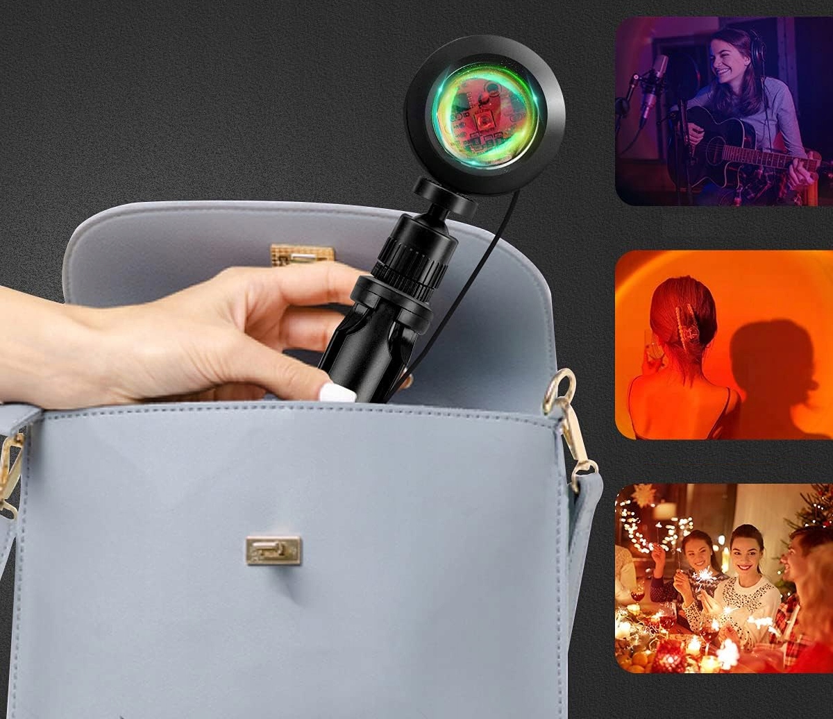 Голова лампы Sunset может вращаться на 360 градусов, поэтому вы можете использовать комнату под любым углом. Удобно освещайте вас под лучшим углом, формой и положением, когда вы или ваш объект снимаете фотографии или видео. Вы можете отрегулировать размер и форму по своему желанию, вращая головку лампы Sun, чтобы создать творческую романтическую атмосферу.