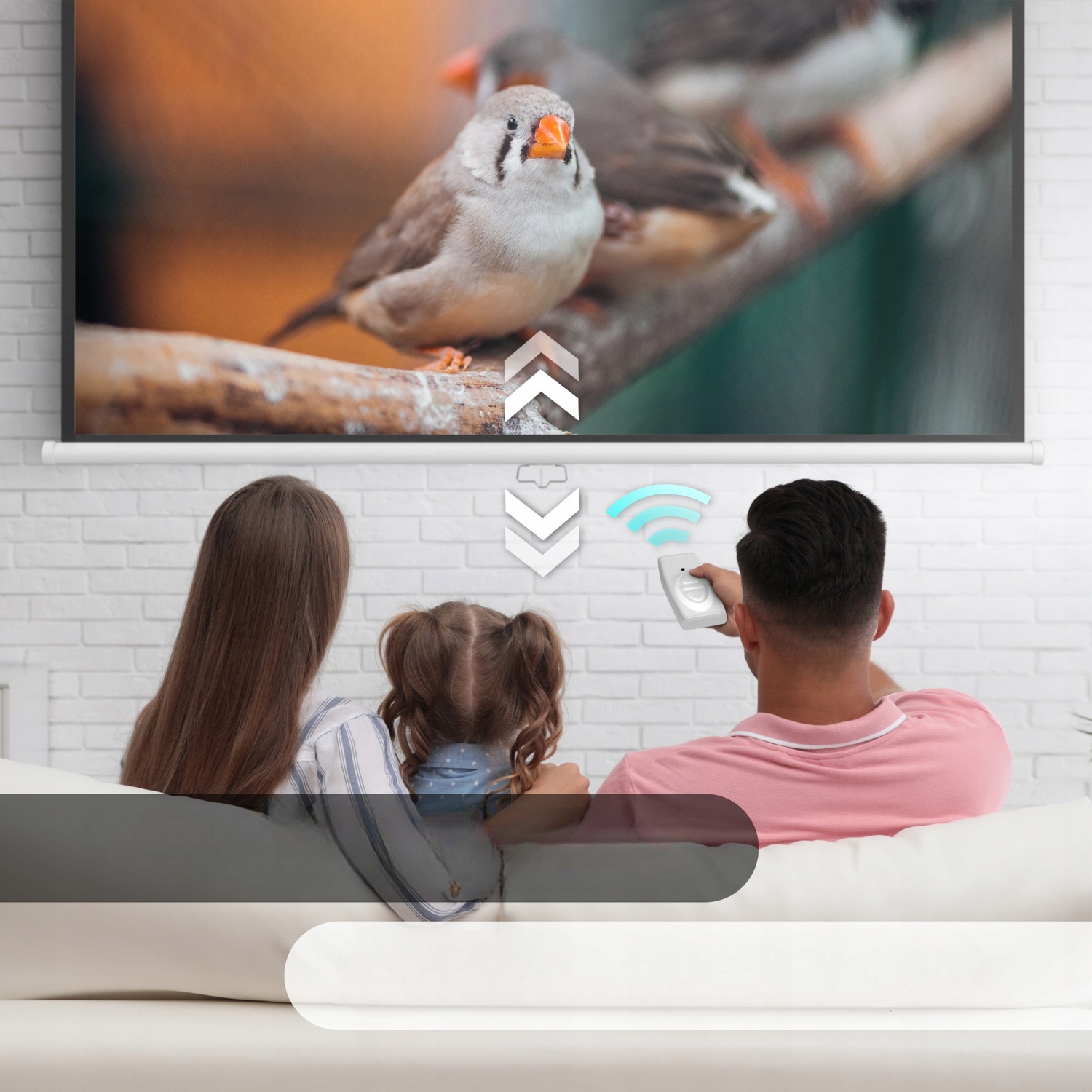 ВЫДВИЖНОЙ: этот проекционный экран полностью выдвигается с помощью электропривода — вы можете раскладывать и убирать его в соответствии с вашими предпочтениями.