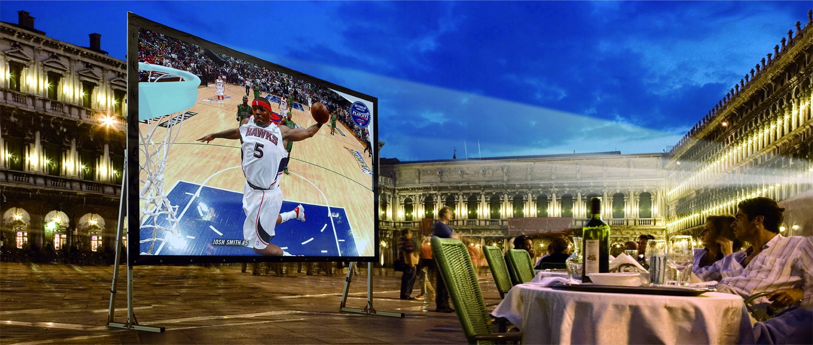Простая система складывания и входящий в комплект транспортировочный ящик облегчают путешествие и работу с экраном Орион.