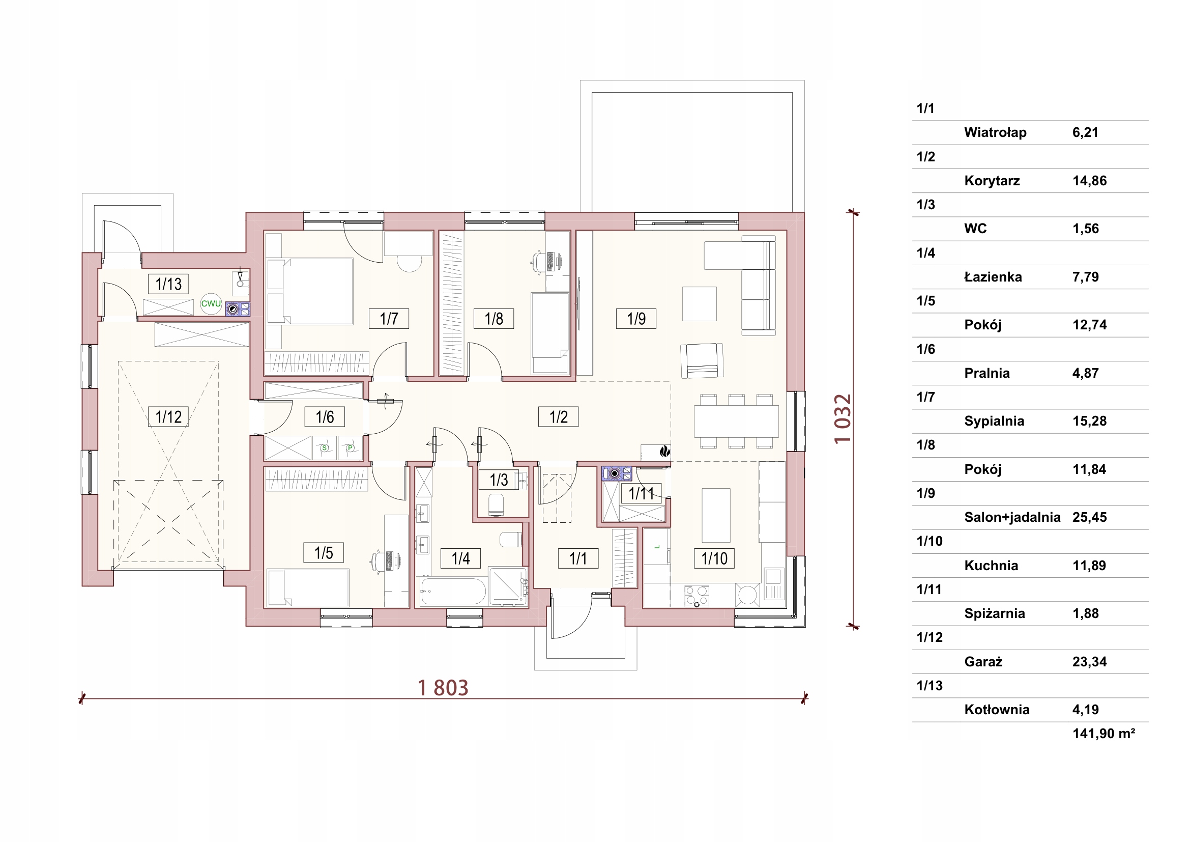 Комплексный проект частного дома с гаражом полезной площадью 142м2