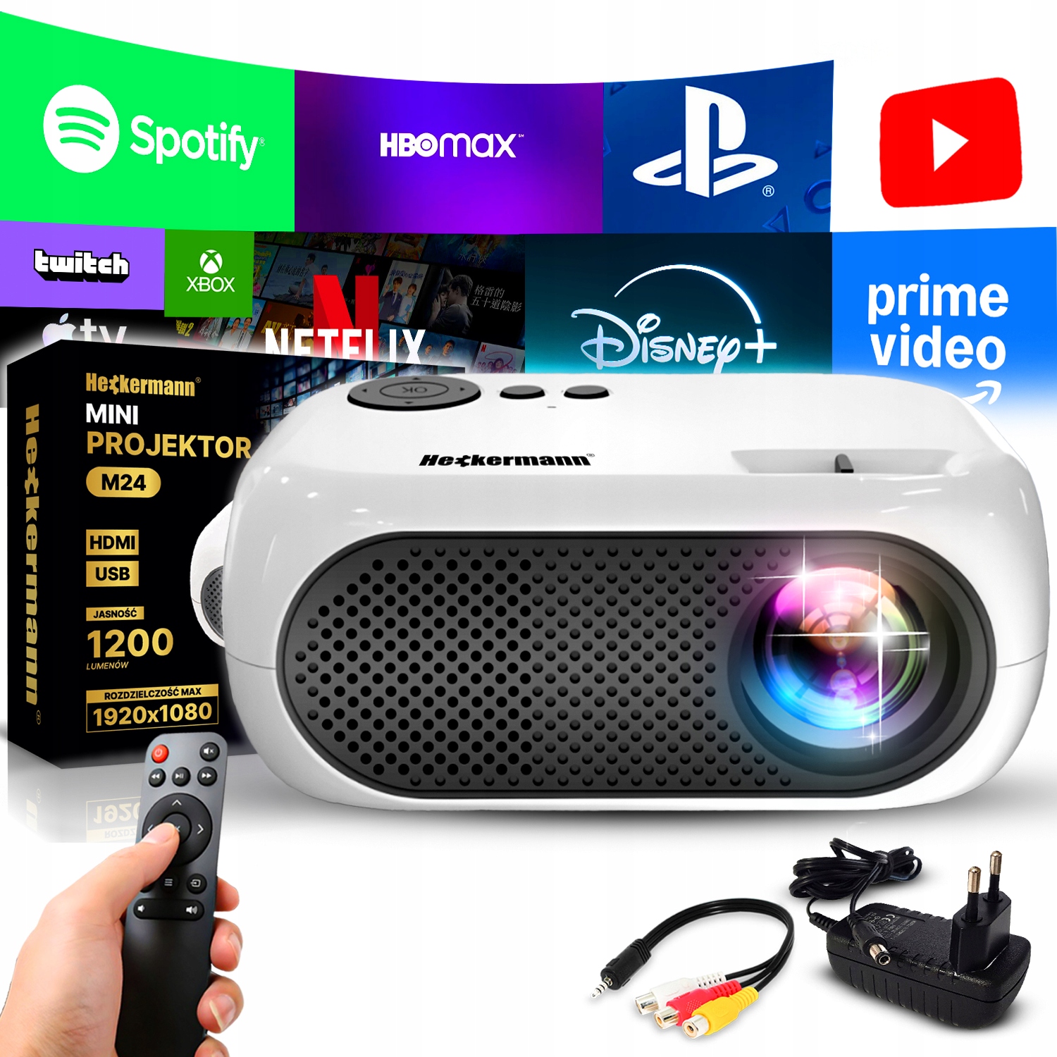 Heckermann M24 — компактный светодиодный проектор, идеально сочетающий в себе функциональность и удобство использования.
