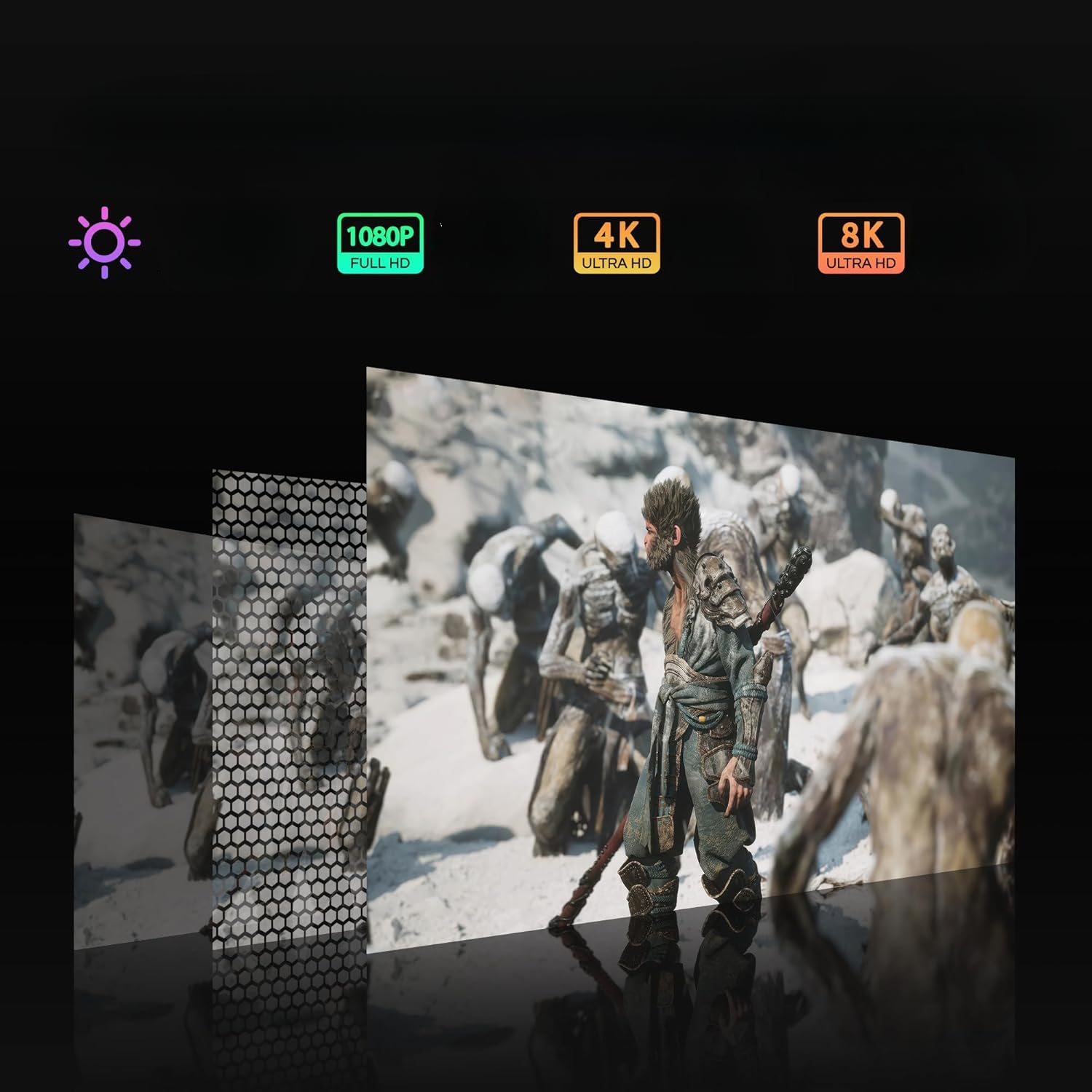 - Непревзойденное качество изображения: погрузитесь в мир потрясающей четкости и ярких цветов. Проектор Sainlor 4K обеспечивает собственное разрешение 1080p и четкое, детальное изображение, которое оживит ваши любимые фильмы, телепередачи и презентации. Благодаря поддержке декодирования видео 4K и 8K вы испытаете непревзойденную степень качества изображения как для домашнего кинотеатра, так и для профессиональных презентаций.