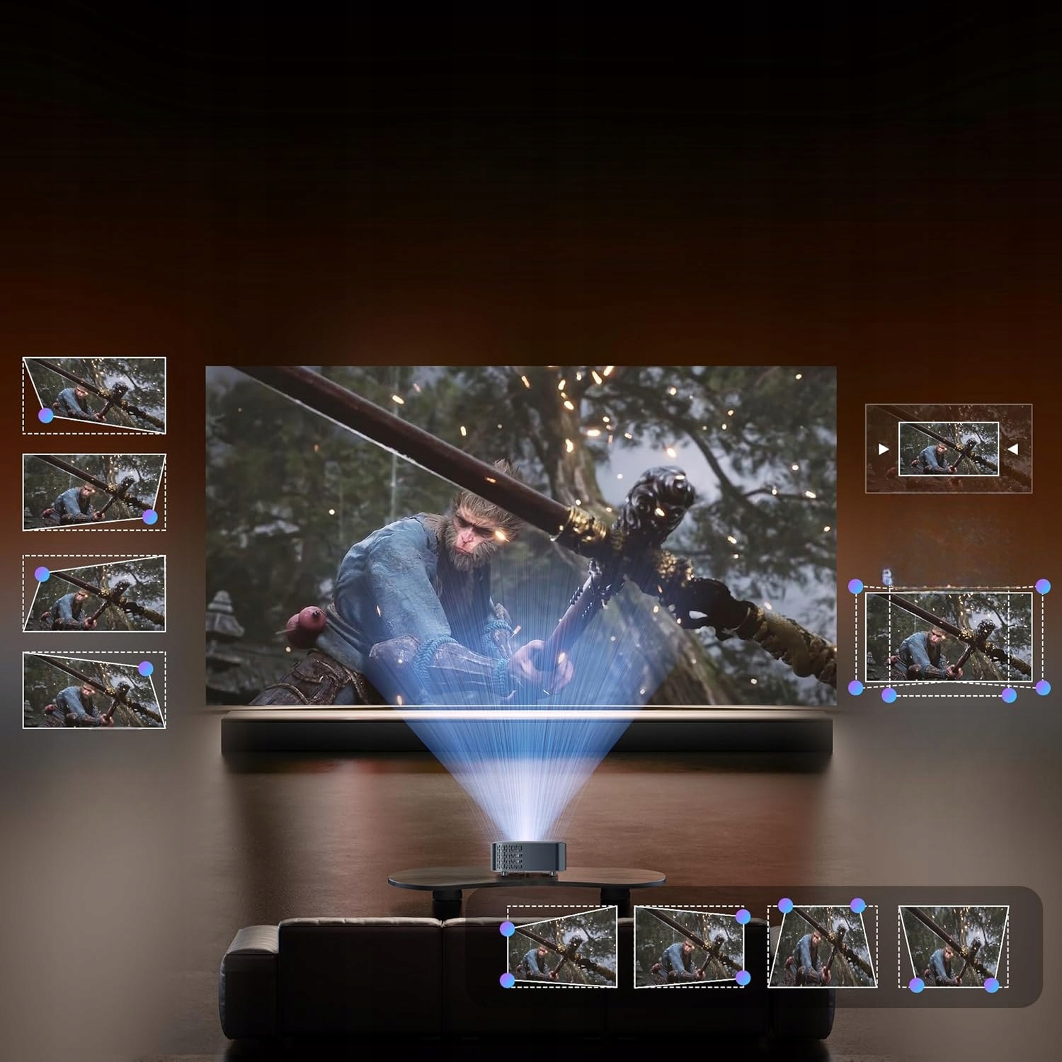 - Захватывающий звук и удобные функции: стереозвуковая система нашего проектора 4K дополняет его уникальные визуальные качества. , создавая кинематографическую атмосферу, не выходя из собственного пространства. Входящий в комплект пульт дистанционного управления Bluetooth с датчиками движения обеспечивает интуитивное и удобное управление. Электрическая фокусировка, цифровая трапецеидальная коррекция 4D+4P (± 45°) и масштабирование 35 % обеспечивают простую настройку и оптимальный просмотр в любом месте.