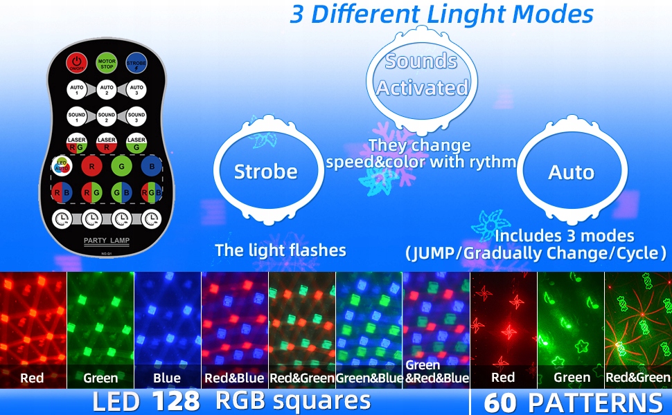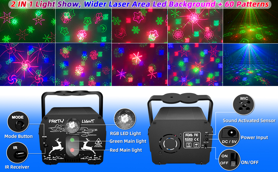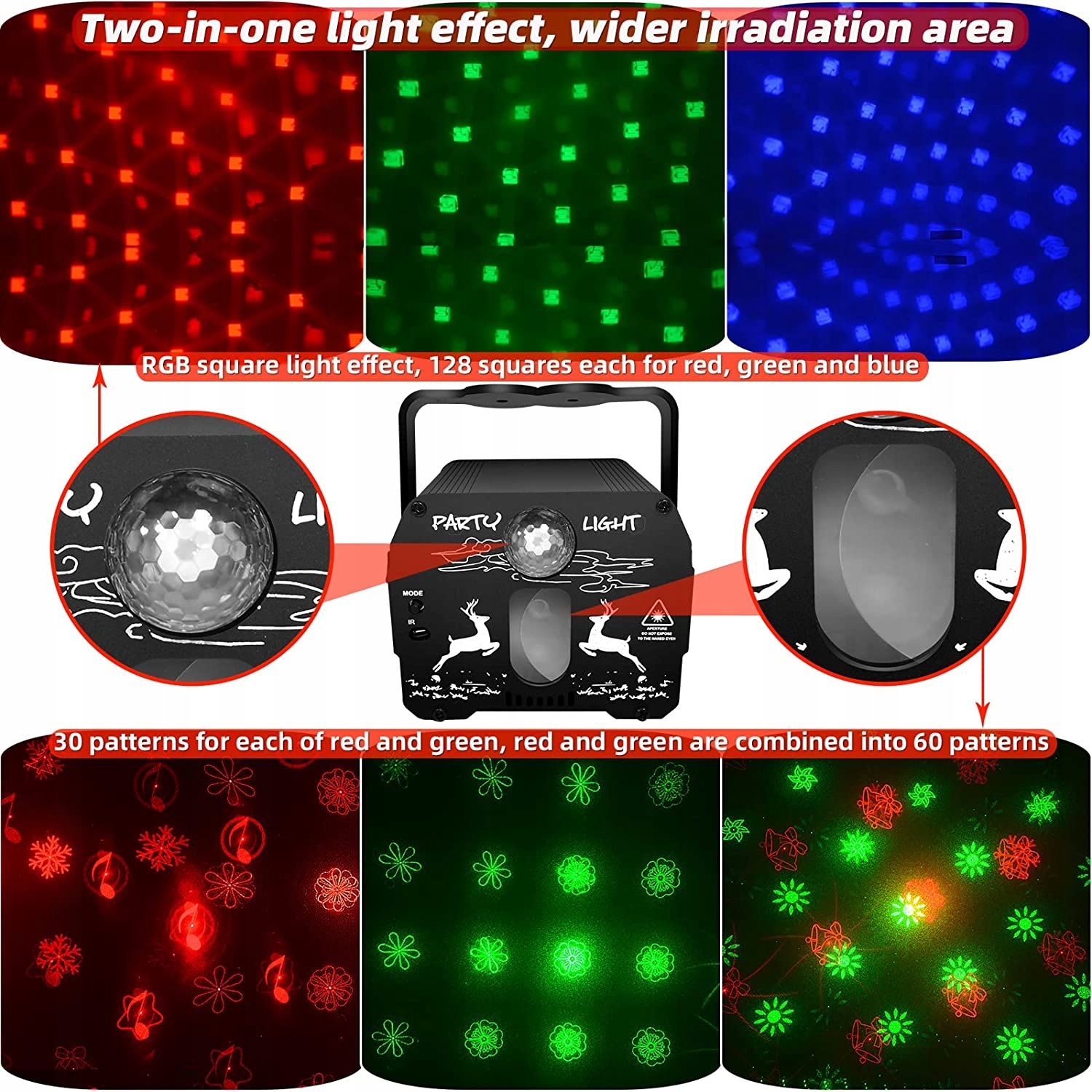 ✅ 【Обновленное потрясающее и супер крутое световое шоу】 Новый улучшенный узор 2 в 1 и довольно яркие светодиодные светильники для вечеринок, оснащенные 60 комбинациями узоров и 128 квадратами RGB. Доступен новый романтический и фантастический узор, всего 7 цветов фона (красный, зеленый, синий, красный и зеленый, красный и синий, синий и зеленый, красный и зеленый и синий) и 2 комбинации лучей (красный, зеленый), создавая потрясающие и мощные сценические световые эффекты с высококачественным изображением и стробоскопической подсветкой RGB!