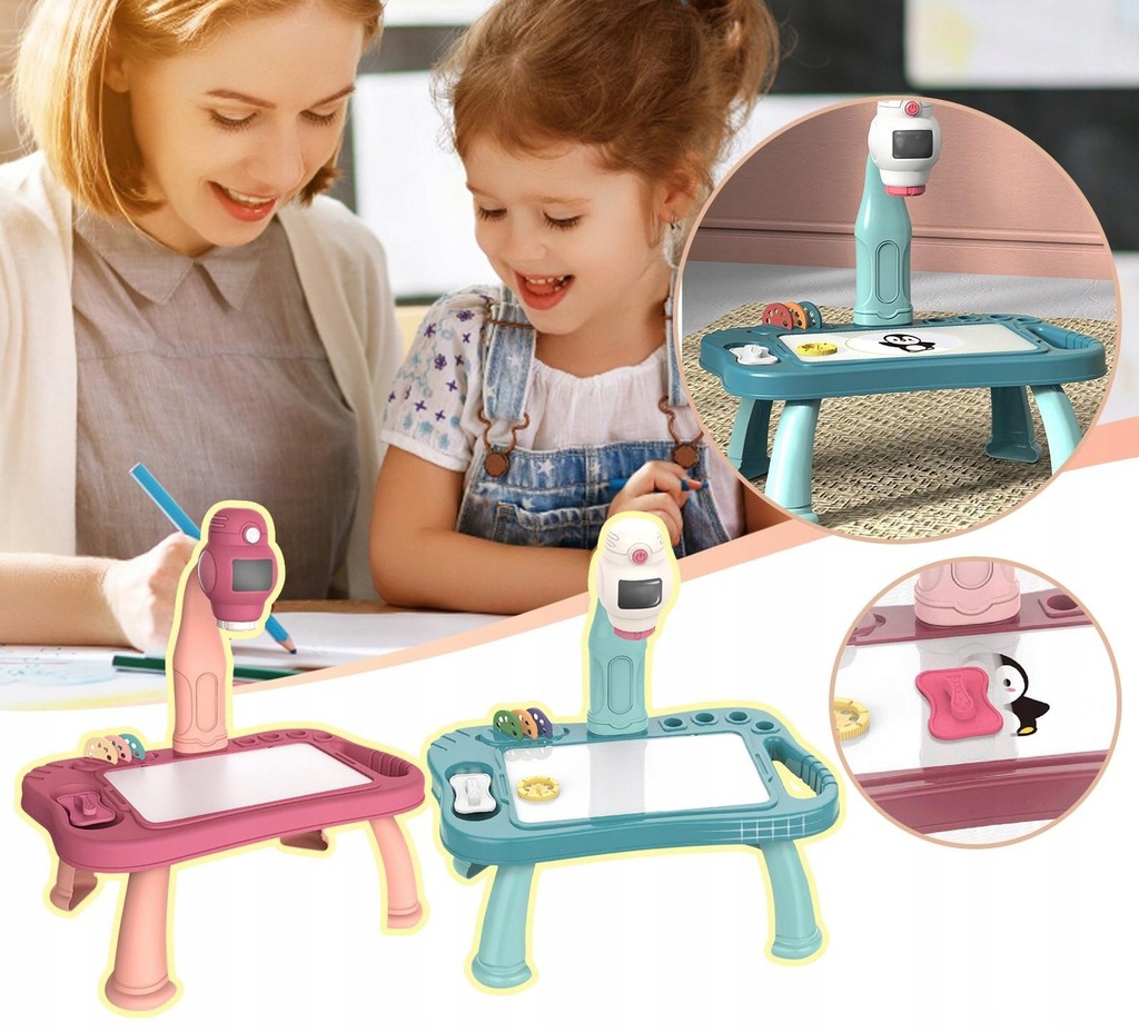 Для еще лучших результатов рисования проектор был разработан таким образом, чтобы можно было регулировать резкость отображаемого изображения. Игрушка поможет хорошо провести время всей семьей, ведь каждый член сможет попробовать свой талант в рисовании и кальке.