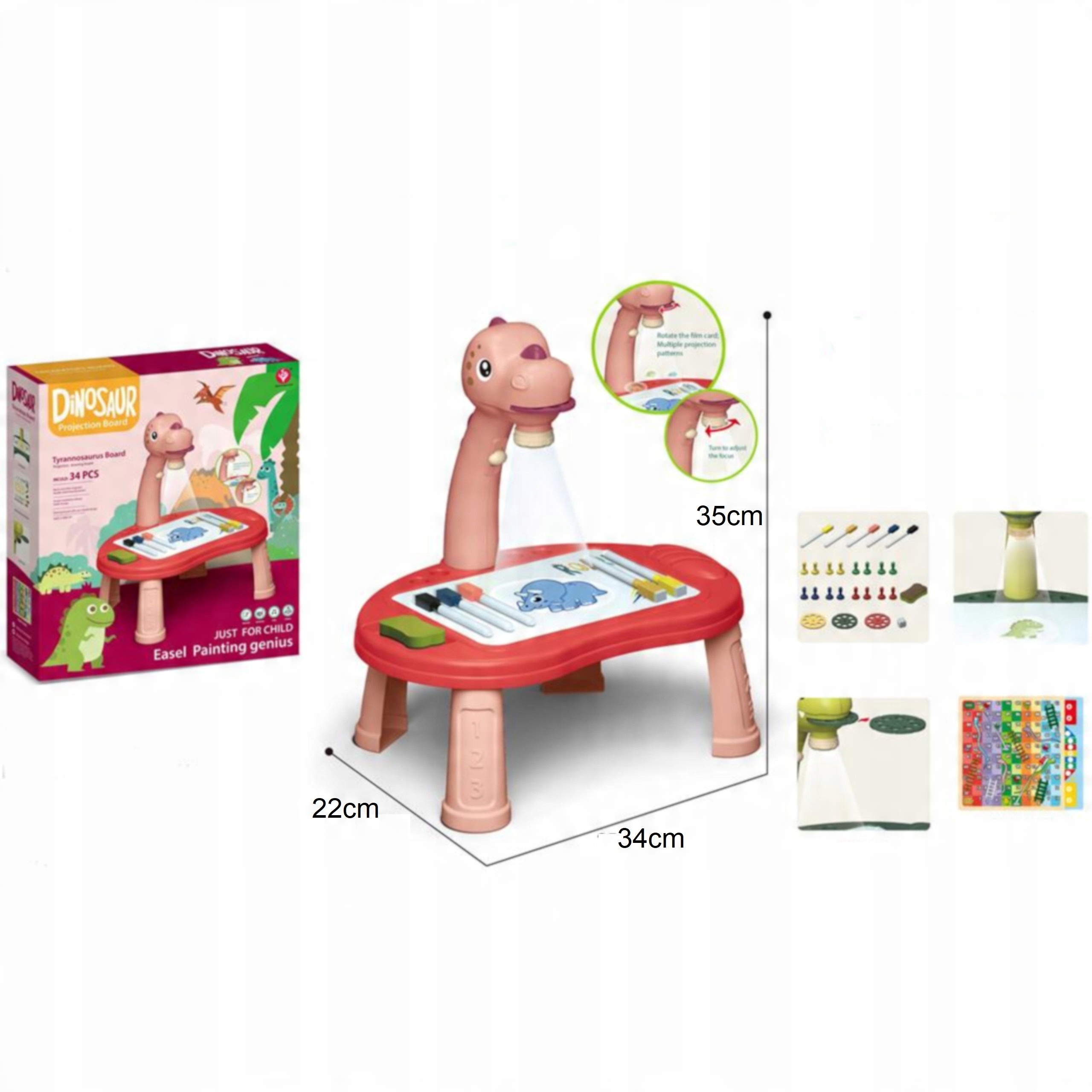 - Проектор с головой динозавра с подставкой для рисования и 4 ножками.