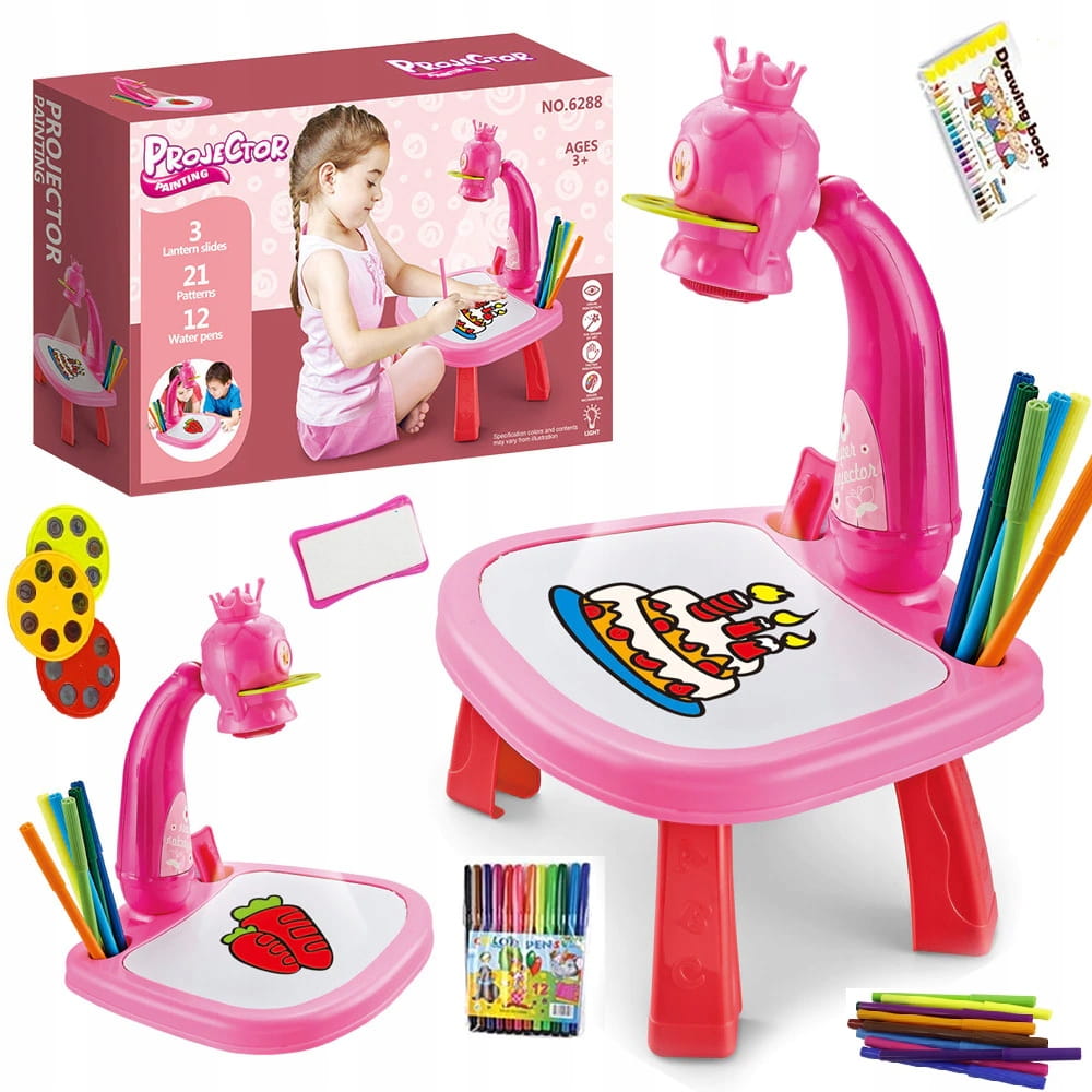 🌈 Детский проектор для рисования — розовый, с маркерами и альбомом для рисования!