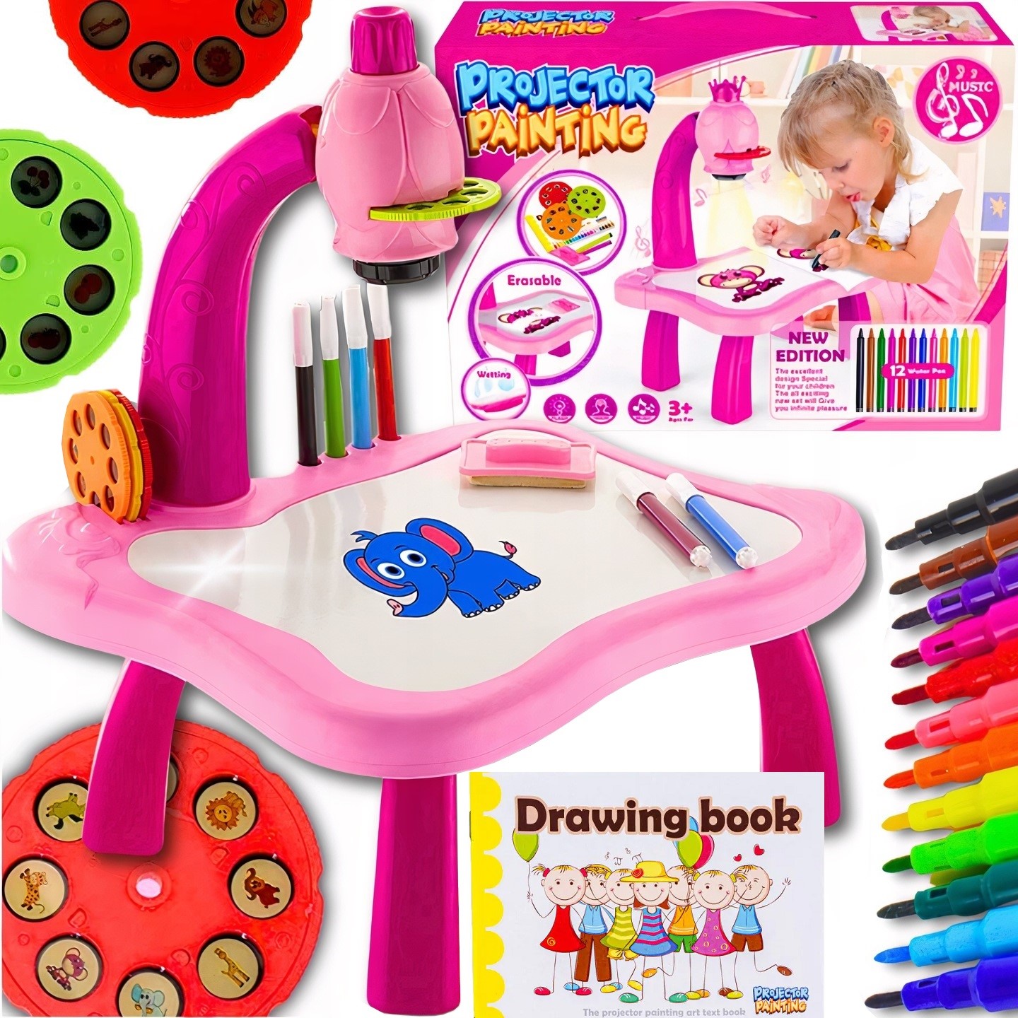 ⭐ ПРОЕКТОР ДЛЯ ОБУЧЕНИЯ РИСОВАНИЮ ДЛЯ ДЕТЕЙ, РОЗОВЫЙ + АЛЬБОМ И РУЧКИ