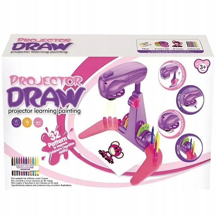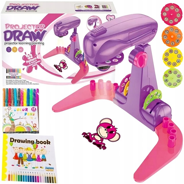 Этот высококачественный проектор для обучения рисованию – это не только интересный гаджет, но прежде всего инструмент, который поможет вашему ребенку развить творческие способности и воображение. Благодаря 32 различным образцам для подражания, разделенным на 4 тематических диска, ваш ребенок никогда не заскучает и всегда найдет что-то новое для рисования.