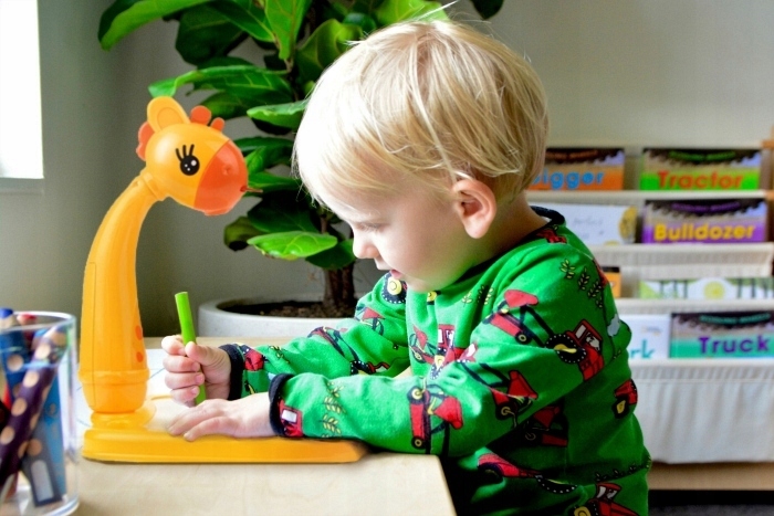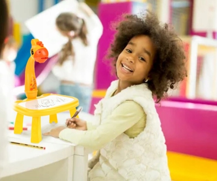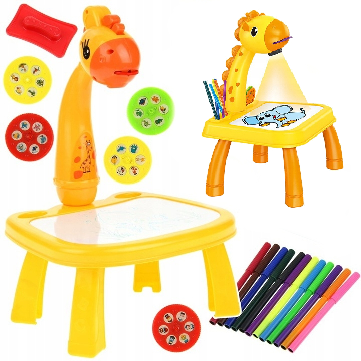 Проектор-жираф — идеальное решение для ребенка, который любит рисовать. Доска с проектором, на которой отображаются 36 рисунков, заинтересует каждого маленького художника. Детям, которые только начинают учиться рисовать, будет очень интересно воспроизвести красивый рисунок в разных цветах. Благодаря такой забаве ребенок тренирует руку и учится проводить линию, чтобы нарисовать все, что захочет. А благодаря проектору дети могут создавать рисунки различных персонажей, красивых наземных и водных животных, а также быстрых автомобилей идеальных форм и цветов.