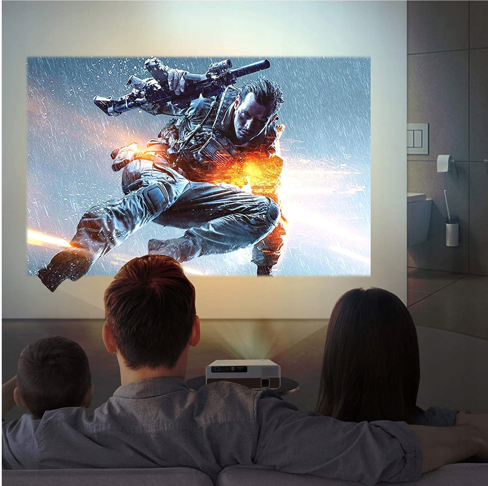 - В качестве замены телевизора – огромный экран до 300 дюймов.