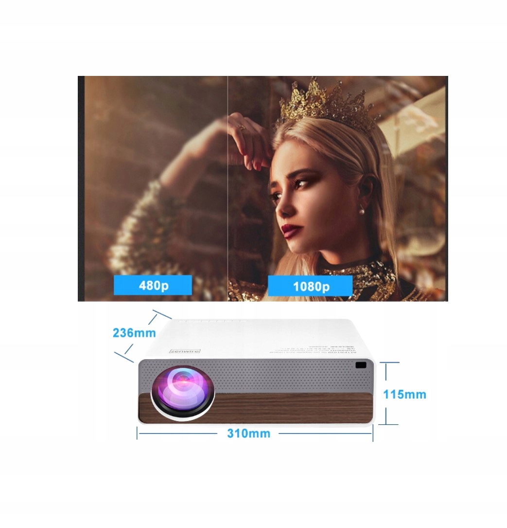 Корпус изготовлен из высококачественного матового АБС-пластика. Продуманный дизайн и белый цвет позволяют устройству красиво смотреться в любом стиле и помещении. Проектор не только обеспечивает высококачественное аудиовизуальное качество, но и служит украшением дома.