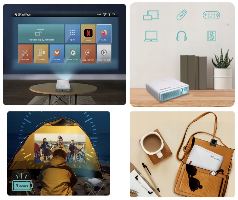 Проектор Full HD WiFi Android EZCast Beam J4a до 100 дюймів Акумулятор