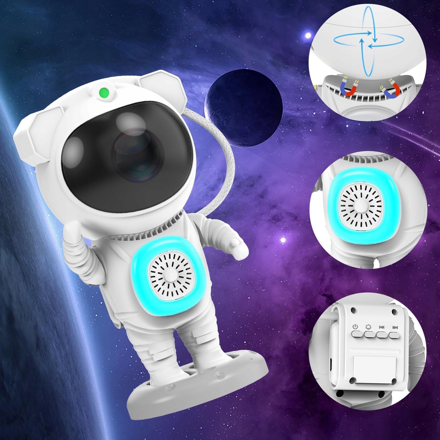Этот очаровательный проектор в форме космонавта также является универсальным компаньоном! Его тело (грудь) излучает свет семи разных цветов (красный, зеленый, синий, желтый, фиолетовый, розовый, белый). Вы можете выбрать постоянный цвет, чтобы создать определенное настроение, или установить режим плавной смены цветов. При этом «голова» космонавта (объектив проектора) проецирует 7 туманностей разных цветов и рассыпает бесчисленное количество «звезд» на потолке и стенах спальни. Всеми режимами можно легко управлять с помощью пульта дистанционного управления. Удобно лежа в постели, вы сможете открывать и переключать все волшебные комбинации, позволяя нежному свету звезд и цветов сопровождать вас во сне и сладких снах. 😴✨