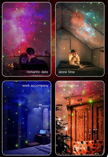 Он освещает красочную туманность. света, имитирующего реалистичное звездное небо с мерцающими звездами. Вы можете окунуться в другой, красочный мир по всей комнате! Эффект звездного облака можно регулировать с помощью пульта дистанционного управления или кнопки.
