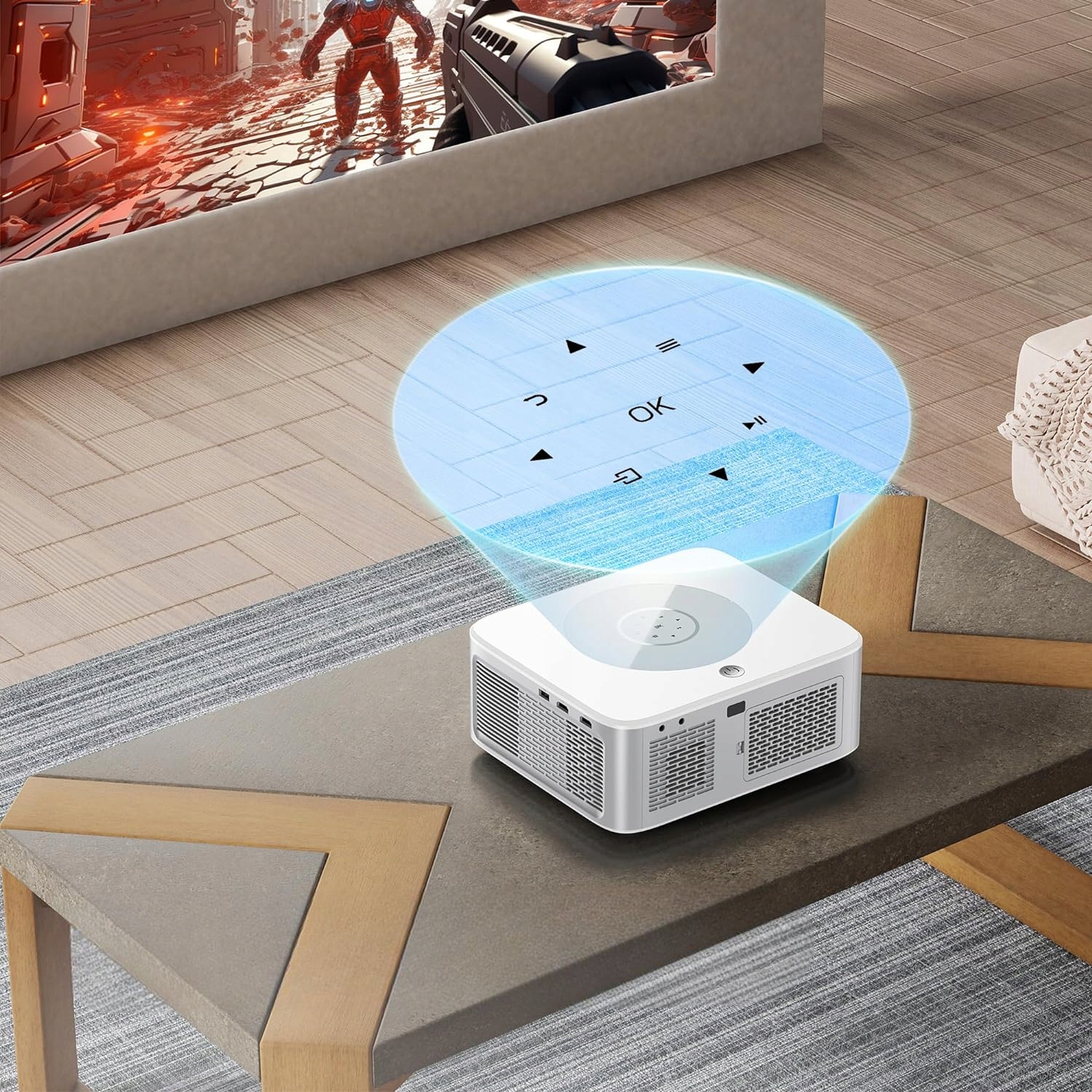 Автоматическая настройка проектора/трапециевидной коррекции: Full HD 1080p Wi-Fi Projector с Bluetooth, 4K-поддержкой с помощью кнопки сенсорного Специальная функция: Автоматическая фокусировка, новейшая Wi-Fi 6, функция Zoom 100%-50%, память 1G + 8G, Trapezoid коррекция Auto/4d/4p