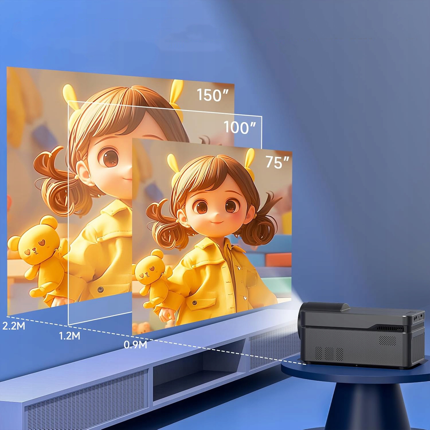 - Минимальное расстояние проецирования: прибл. 0,5–1 м.