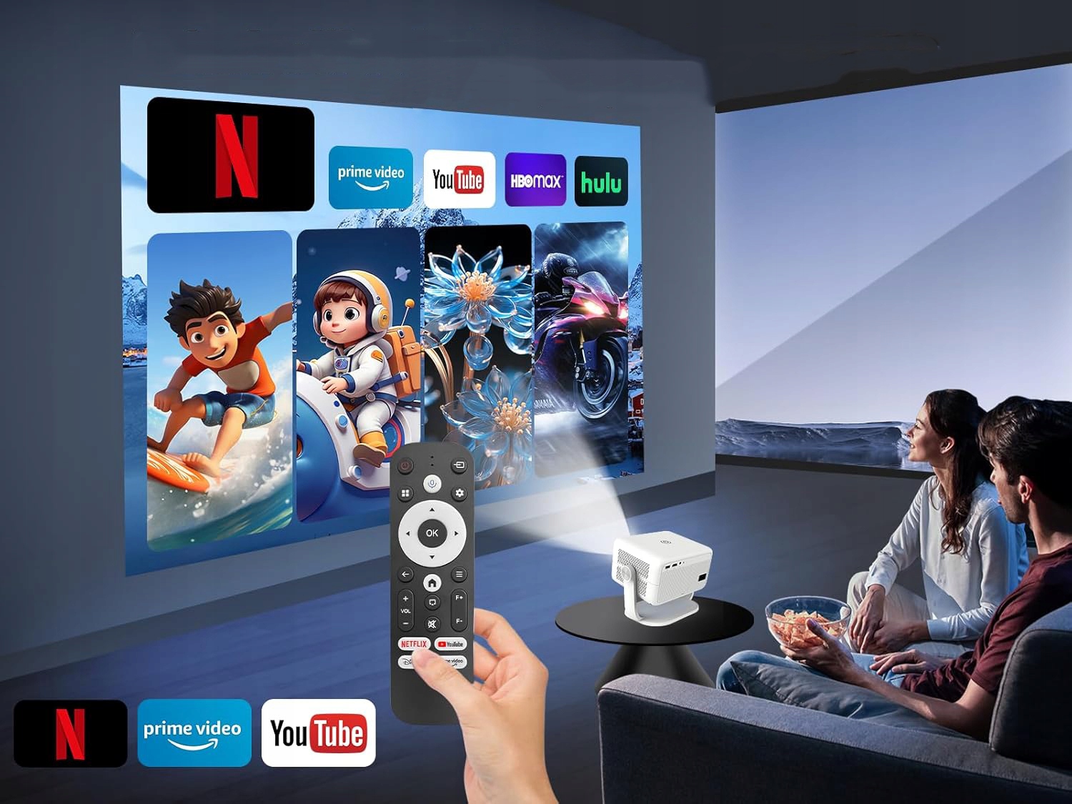 Проектор имеет интегрированную систему с потоковыми приложениями, обеспечивающую быстрый доступ к популярным платформам VOD. Онлайн-контент поддерживается без необходимости подключения дополнительных устройств, что делает HY450 НТВ самостоятельным центром домашних развлечений.