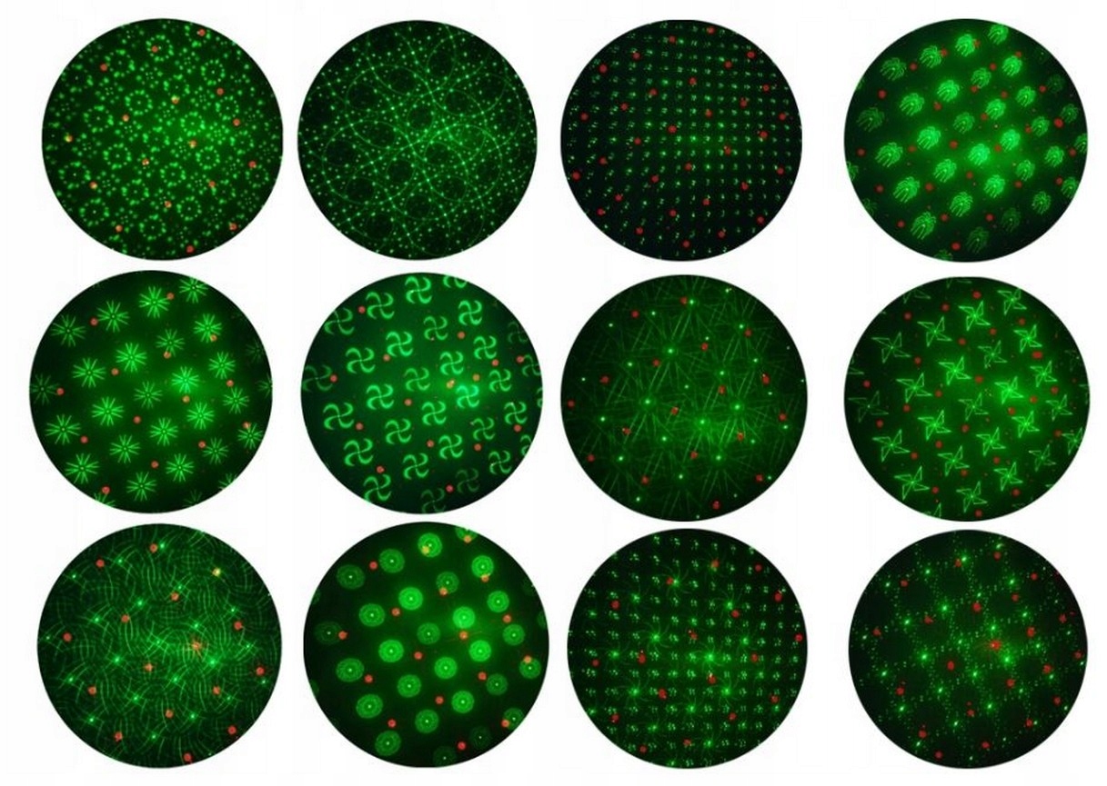 - 24 эффекта RG Красный, Зеленый (выбираются производителем случайным образом) - выбрать лазер с определенным рисунком невозможно!