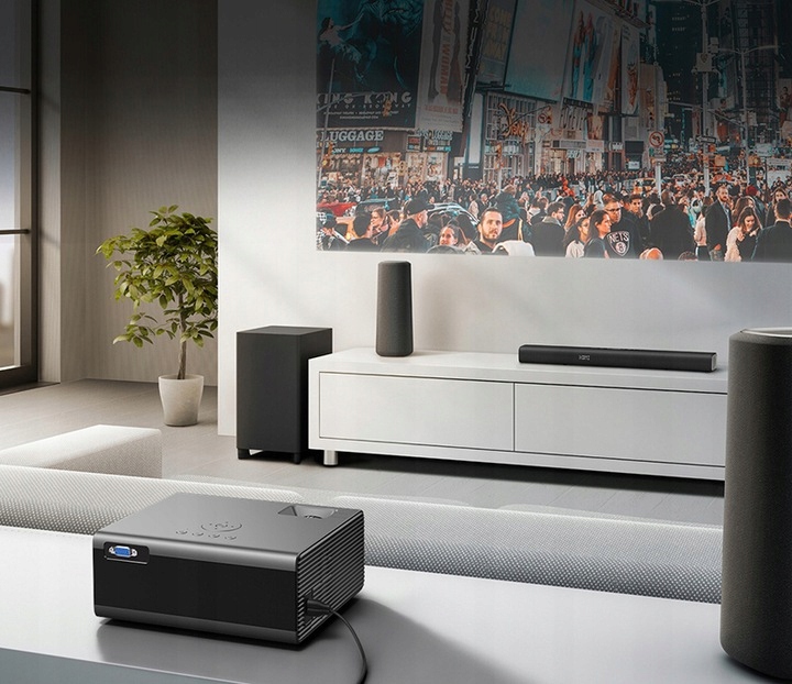 Благодаря изысканной оптике и технологичным материалам даже самое динамичное изображение с диагональю до до 150 дюймов всегда разборчиво, а цветопередача идеальна. воспроизведение гарантирует уникальные визуальные впечатления. Проектор поддерживает высокое разрешениеFull HD (1080p)с собственным разрешением HD.