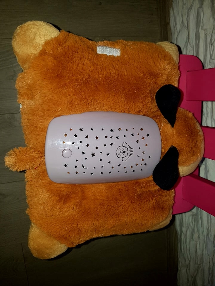Уникальная мягкая подушка оснащена встроенным небольшим проектором, который светится нежным светом. В зависимости от того, какой цвет вы выберете, свет будет синим, зеленым или золотым. Вы также можете выбрать сочетание трех последовательных цветов. Проектор отображает звезды, луну и мордочку питомца на потолке и стенах комнаты.