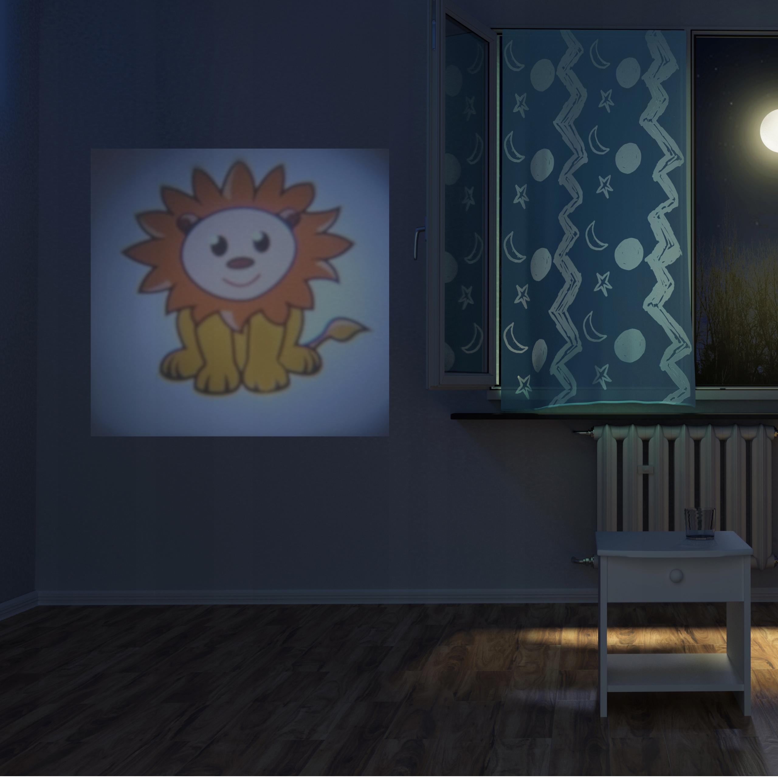 Благодаря регулируемой головке и кронштейну проектора изображения можно проецировать не только на стол, но и на стену! Это идеальный вариант вечернего развлечения, когда проектор может выполнять функцию ночника, создавая на стене увлекательные слайды.