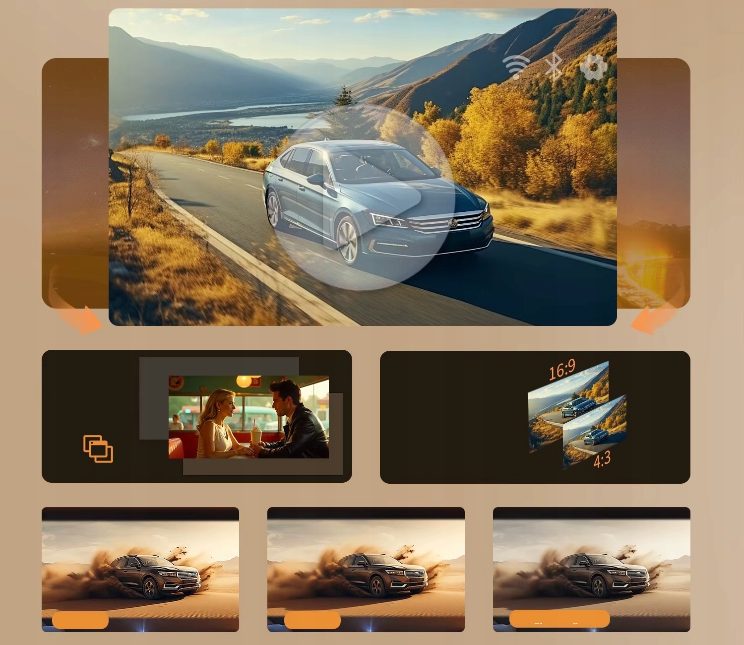 - ✔ Дополнение к размерам: Zoom Function (80%-100%) и возможность выбрать соотношение 4: 3 или 16: 9 позволяет вам идеально соответствовать экрану с вашими потребностями.