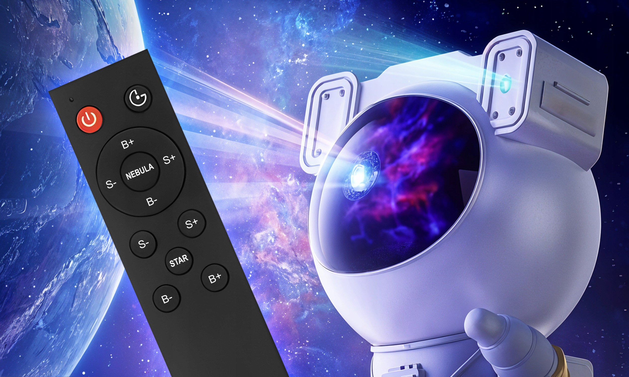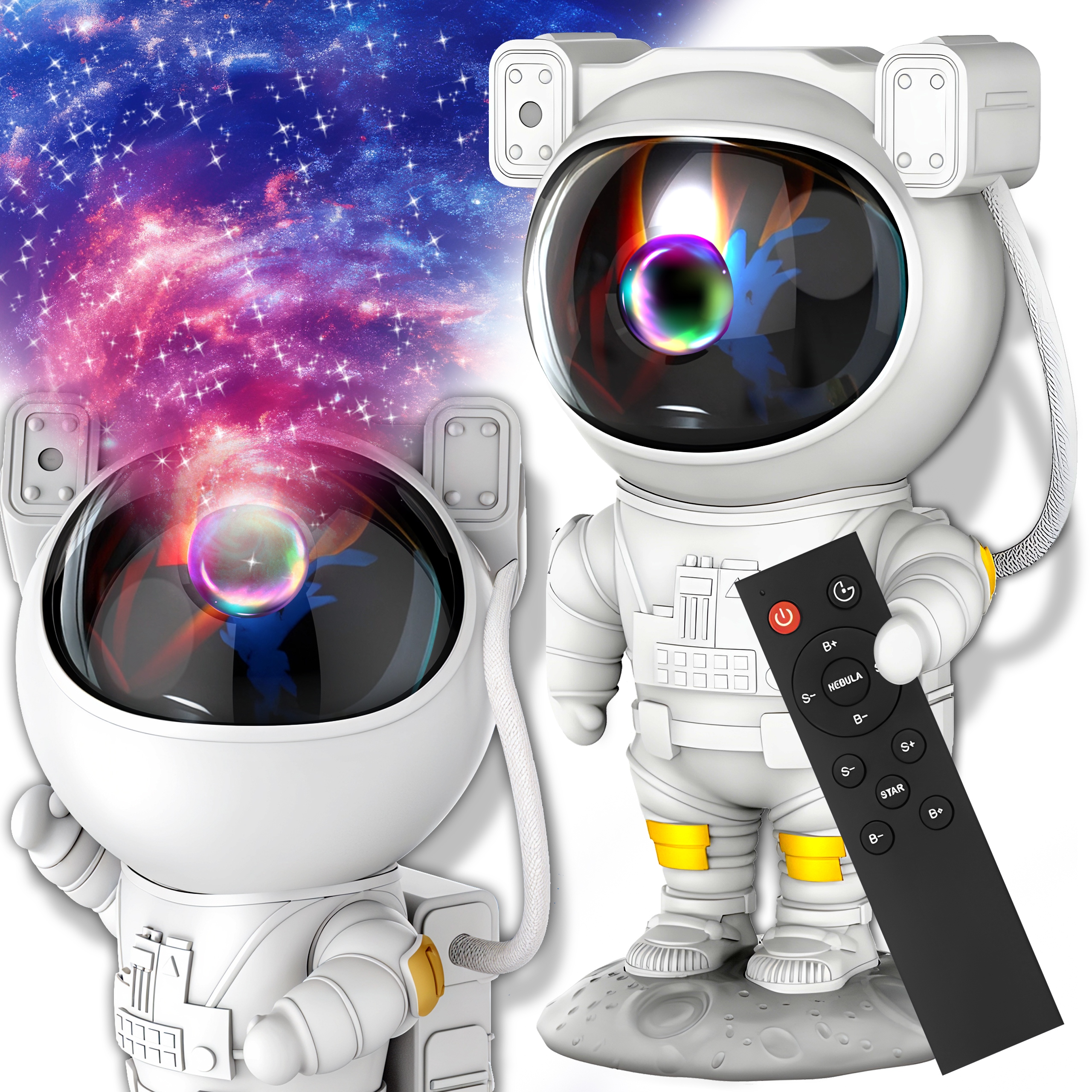 - Пусть проектор будет не только источником света, но и украшением комнаты ! Его очаровательная форма астронавта идеально подходит для декора детской комнаты, придавая ему современный характер.