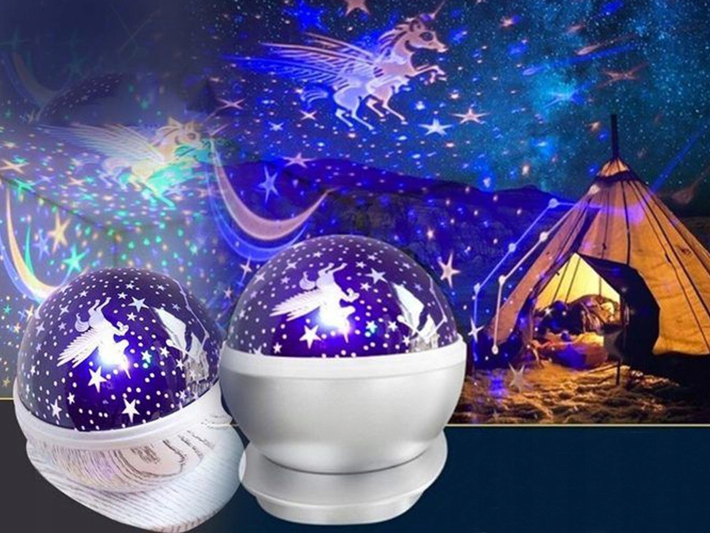 Лампа создает удивительные узоры на стенах и окнах. Прекрасно воспроизводит звездное и безоблачное небо с летающим единорогом.