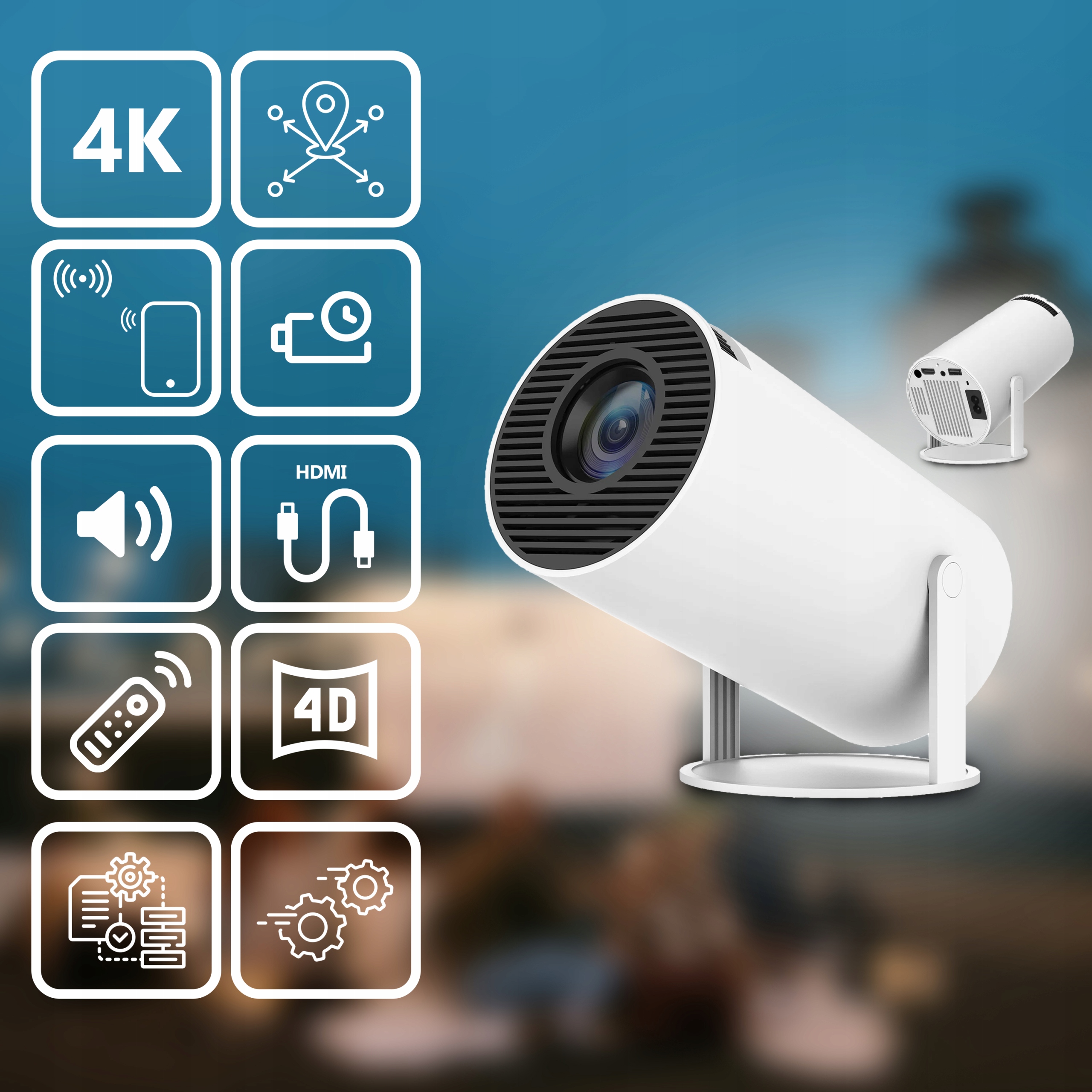 ПРОЕКТОР WIFI ANDROID ПОРТАТИВНЫЙ ВРАЩАЮЩИЙСЯ SMART BT 5.0 4K ДИНАМИК