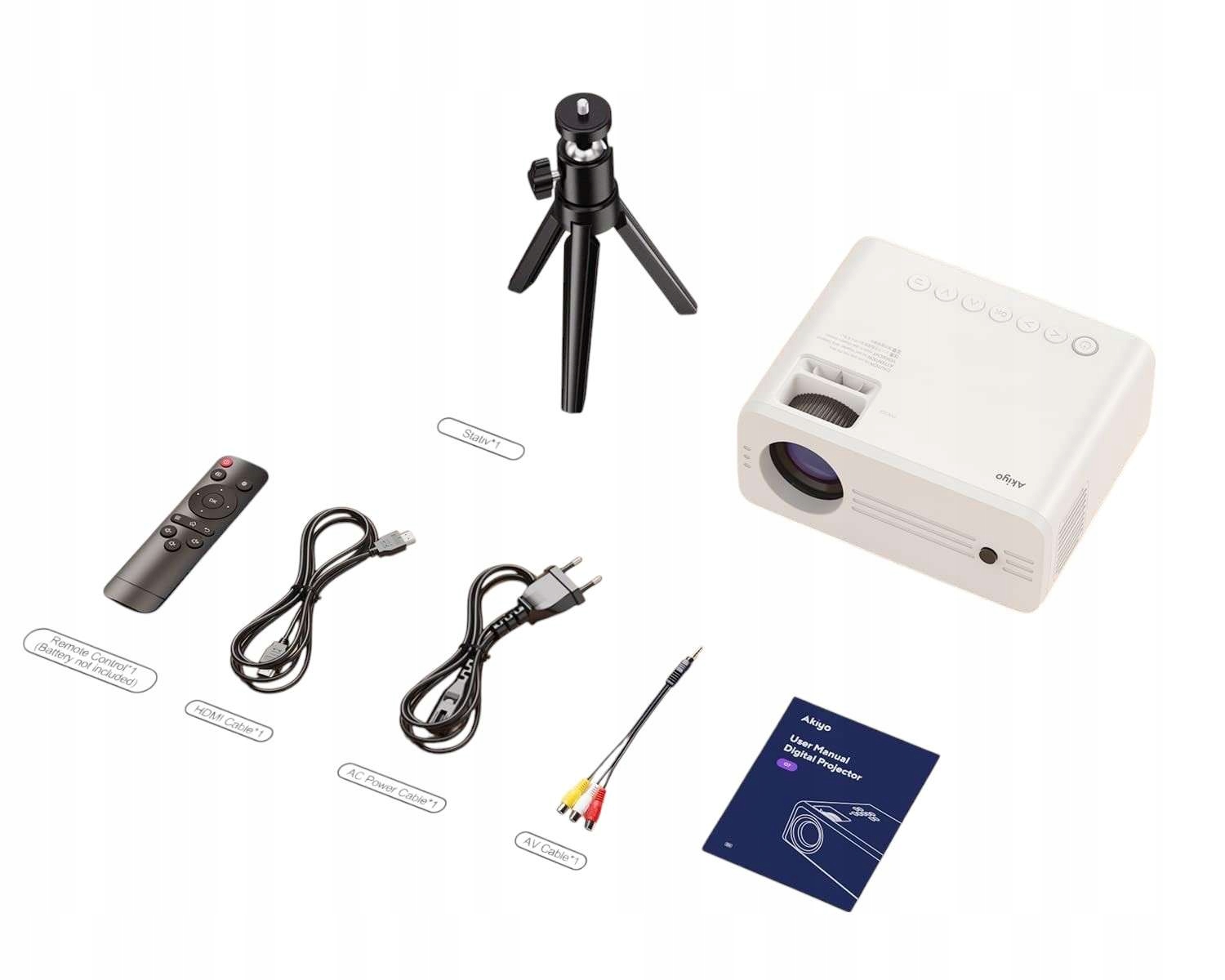 <р> Свобода беспроводной связи благодаря двухдиапазонному Wi-Fi 5G и Bluetooth 5.2. Легко подключайте свои устройства и наслаждайтесь плавной потоковой передачей и великолепным стереозвуком Hi-Fi со встроенными динамиками SRS. <р> Компактный и простой в использовании проектор AKIYO имеет коррекцию трапецеидальных искажений ±20% и функцию масштабирования, позволяющую регулировать изображение, не перемещая устройство. Полная совместимость со многими устройствами делает его незаменимым гаджетом в каждом доме. <р> Универсальность монтажа благодаря входящему в комплект штативу и различным вариантам установки. Независимо от места, вы можете настроить проектор под свои нужды, обеспечив максимально комфортное использование.✅Параметры продукта