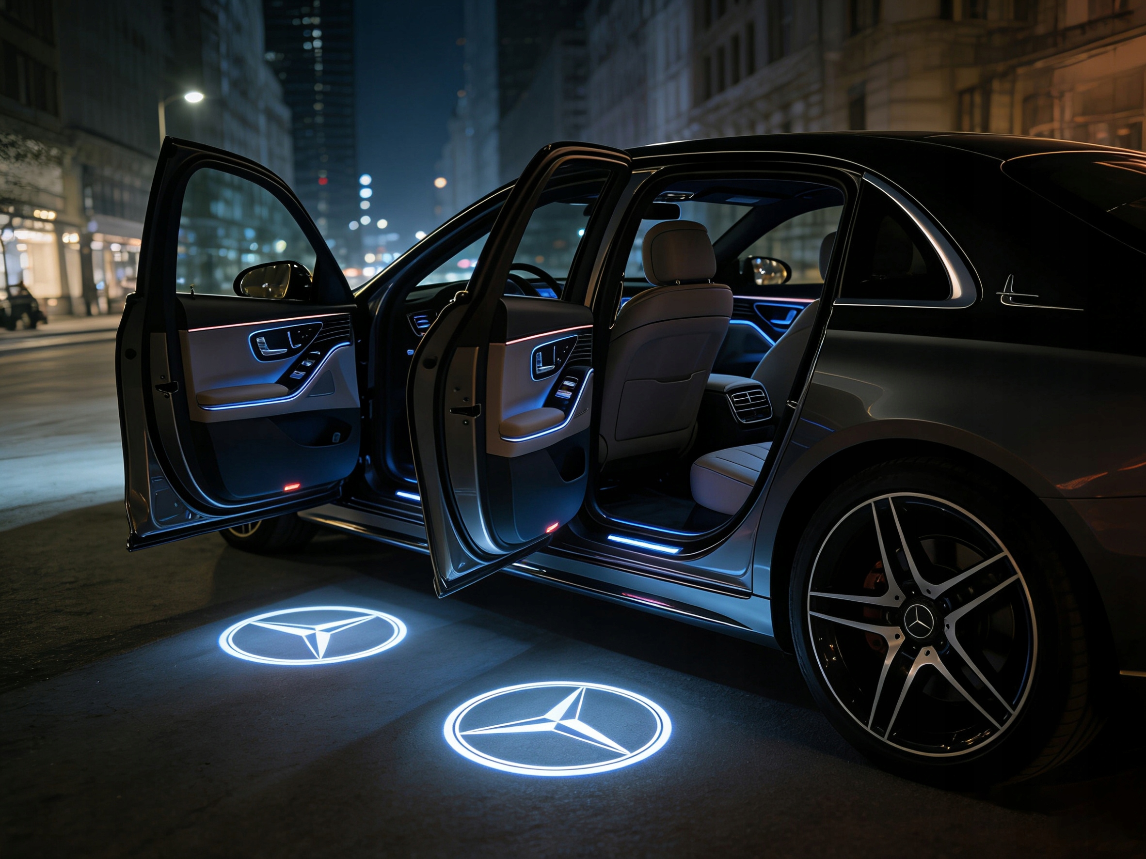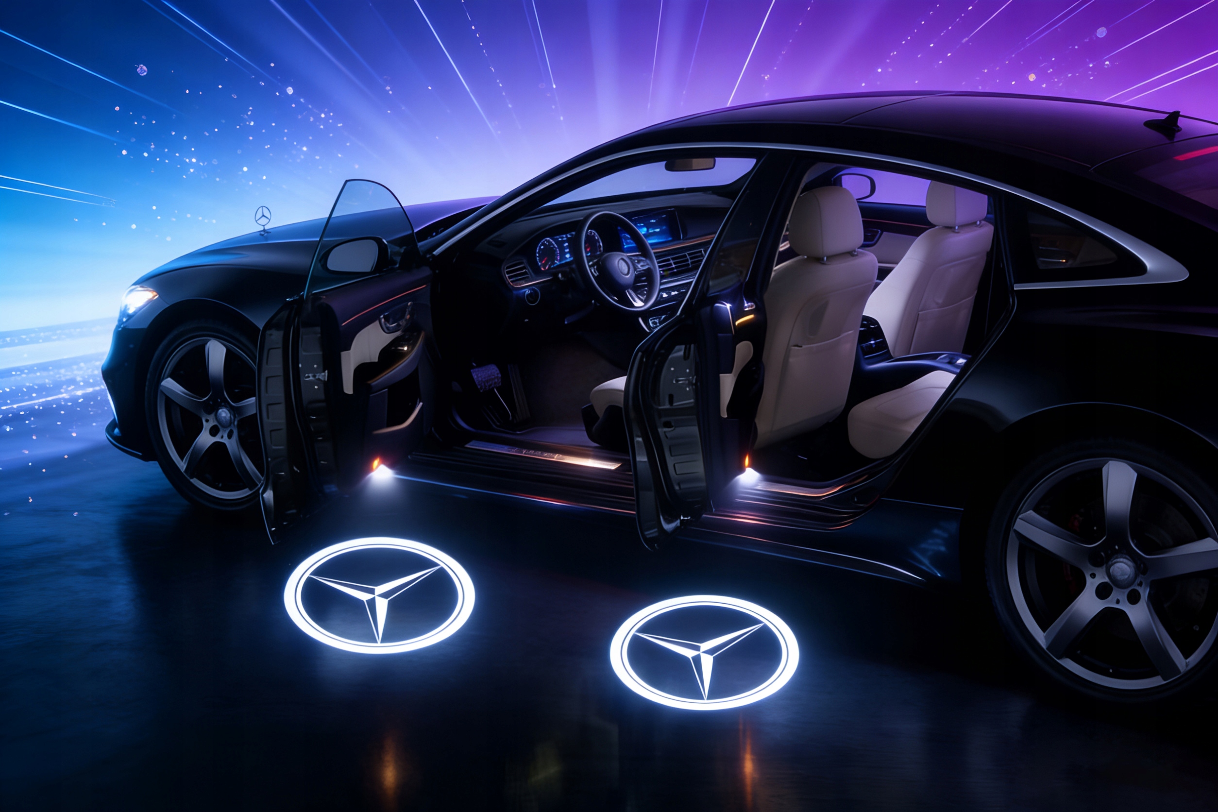 - ✨Стильный внешний вид: Логотип Mercedes-Benz, отображаемый на земле в HD-качестве, добавляет престиж и элегантность вашему автомобилю.